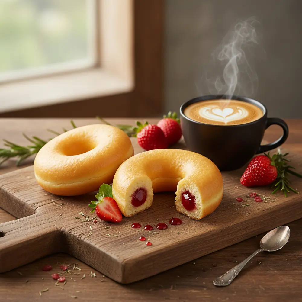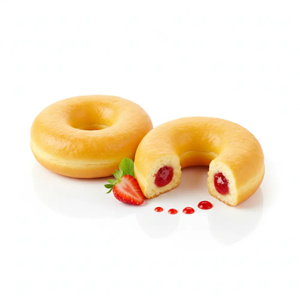 Glukose-Fruktose-Sirup, Zucker, Erdbeere, Wasser, Aromastoffe, Apfelpüree, Sonnenblumenöl, Säureregulator Zitronensäure, Maisstärke, Hefe, Weizenmehl, Maltodextrin, Pektine, Glycerin, Е450i, Eiprodukte, Emulgator: Sojalecithin, E471, Е500ii, Natriumalginat., Calciumcitrate, Salz, Konservierungsstoff Sorbinsäure, Е163