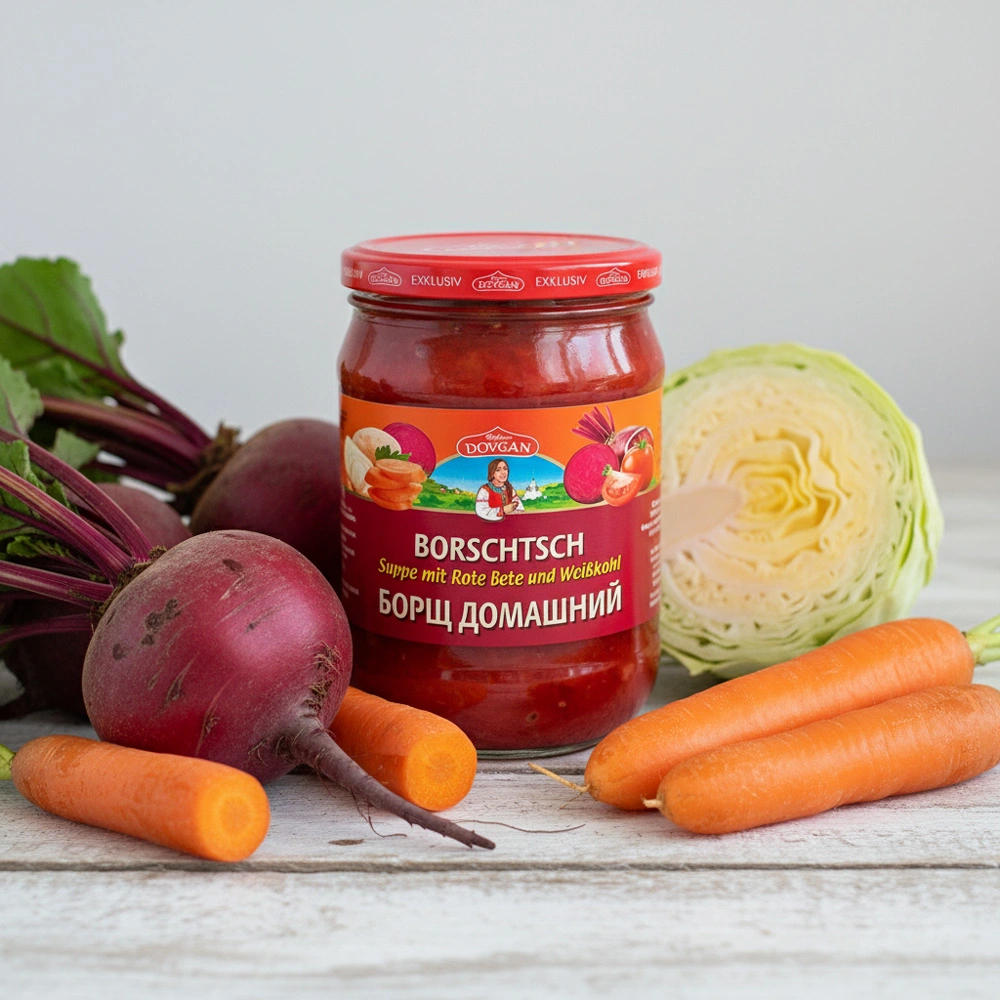 Unser Borschtsch "Russische Küche" mit Rote Bete, Kartoffeln und Weißkohl spart dem Verbraucher viel Zeit aufgrund der schnellen Zubereitung und schmeckt dabei wie hausgemacht.