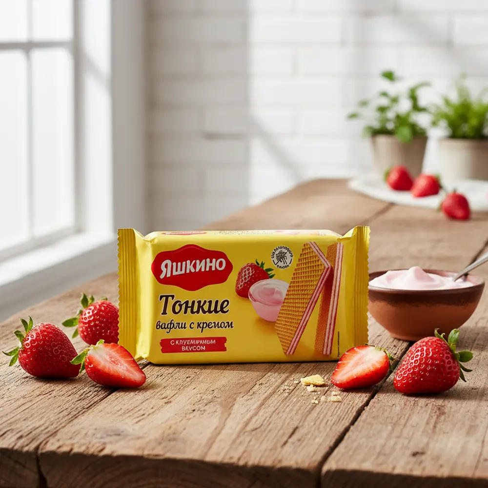 Dünne Waffeln mit Erdbeercreme, Jaschkino, 144 g