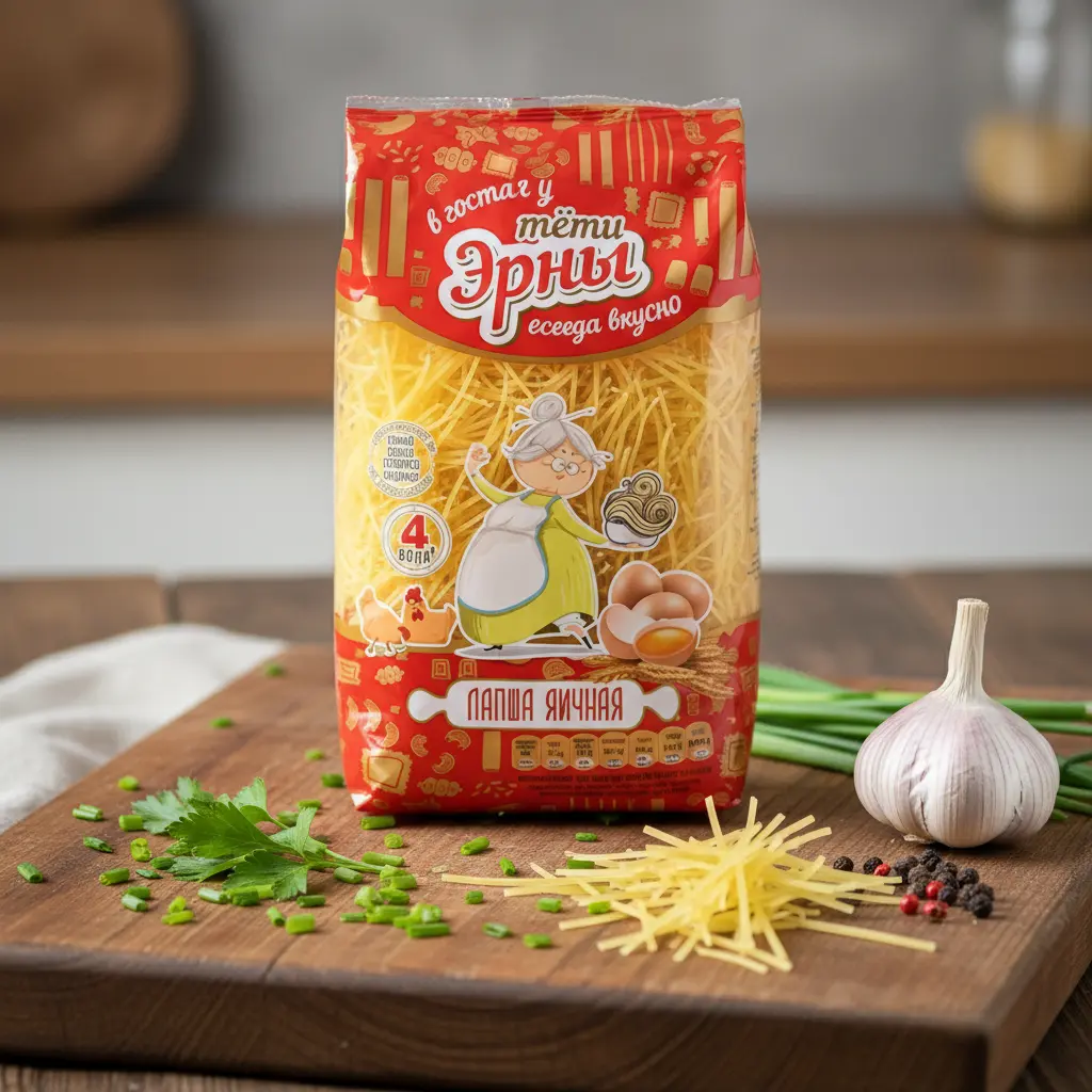 Zutaten: Weizenmehl, Kurkuma, Wasser, Weichweizengriess    , Frischei 20 %, Hartweizengriess