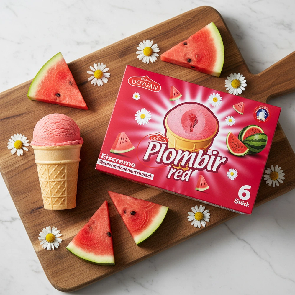 Die Plombir Eiscreme Red ist mehr als nur eine gewöhnliche Eiscreme. Sie vereint das saftige, natürliche Aroma der Wassermelone mit einer cremigen Eisbasis und enthält eine Füllung aus 8% gelierter Wassermelone, die den Geschmack perfekt abrundet. Eingebettet in einen knusprigen Waffelbecher bietet dieses Dessert ein vielseitiges Geschmackserlebnis, das die Sinne belebt.
