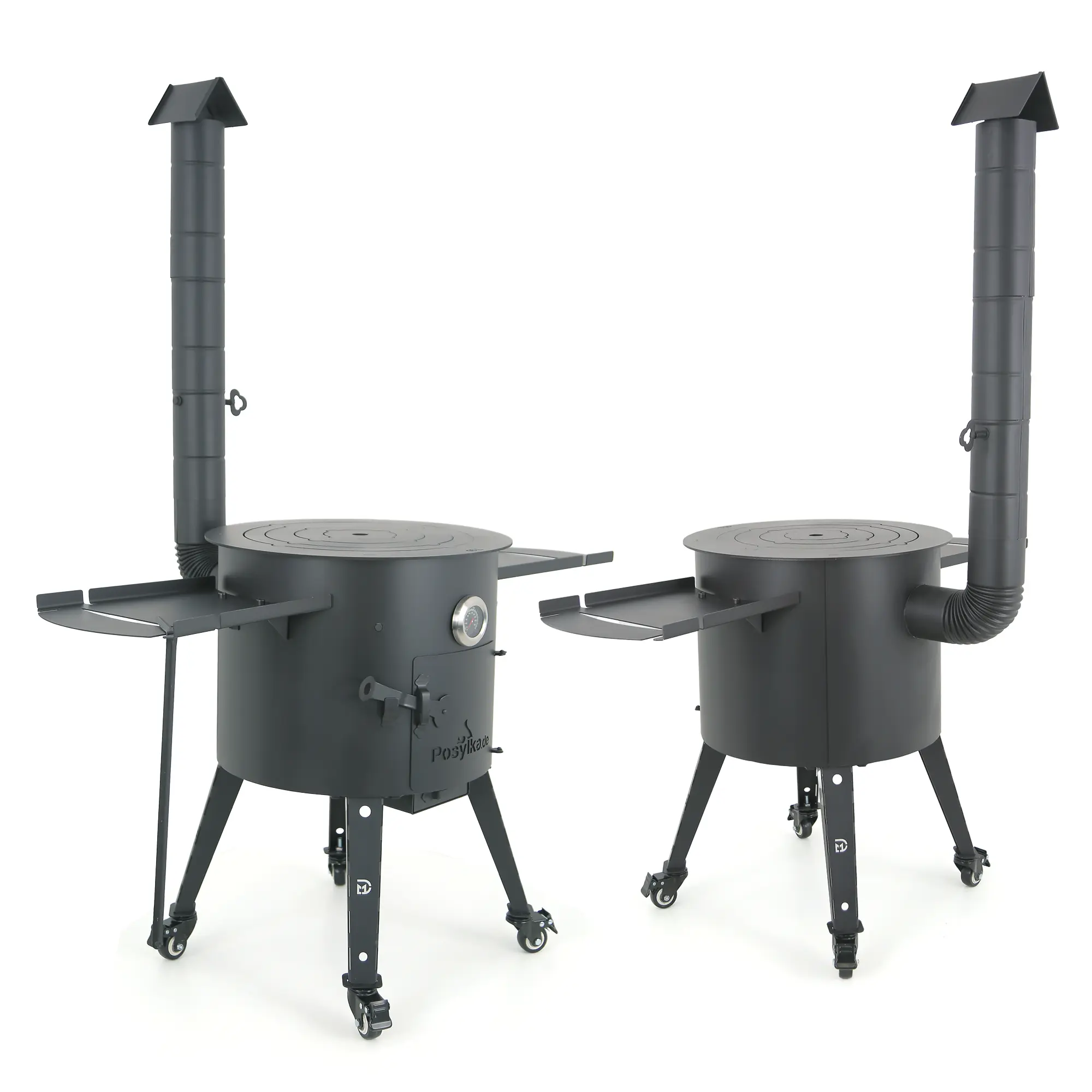 Das exklusive Set – der KazanoFF-Ofen mit Premium-Zubehör – ist die perfekte Lösung für alle, die echten Outdoor-Genuss lieben. Ideal geeignet für einen 16-Liter-Kessel Zum Lieferumfang des Ofens gehören zwei abnehmbare Ablagetische, vier Transportrollen, ein hitzebeständiges Thermometer, eine Stahlplatte mit Ringen sowie ein automatischer Zahnstocher-Dispenser.