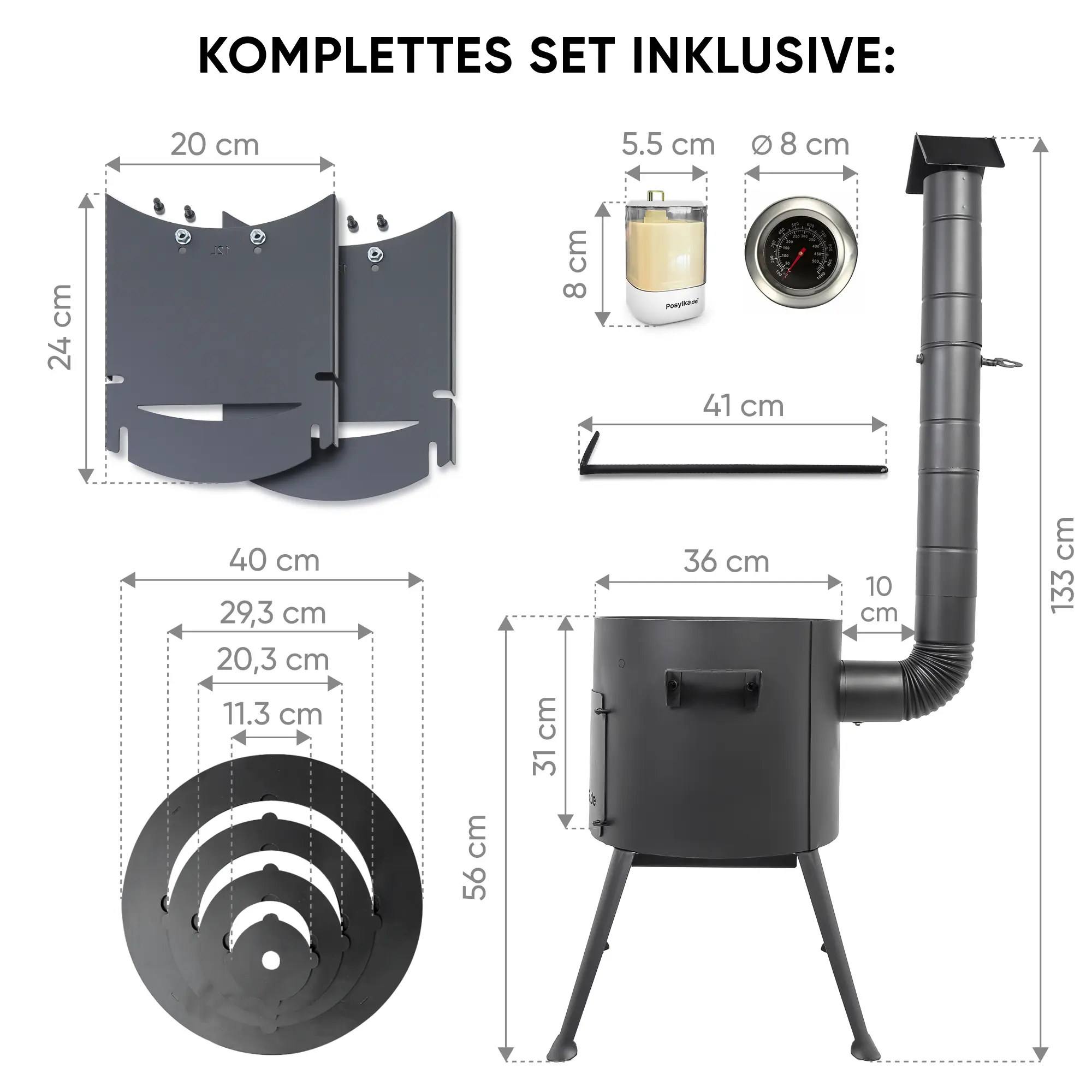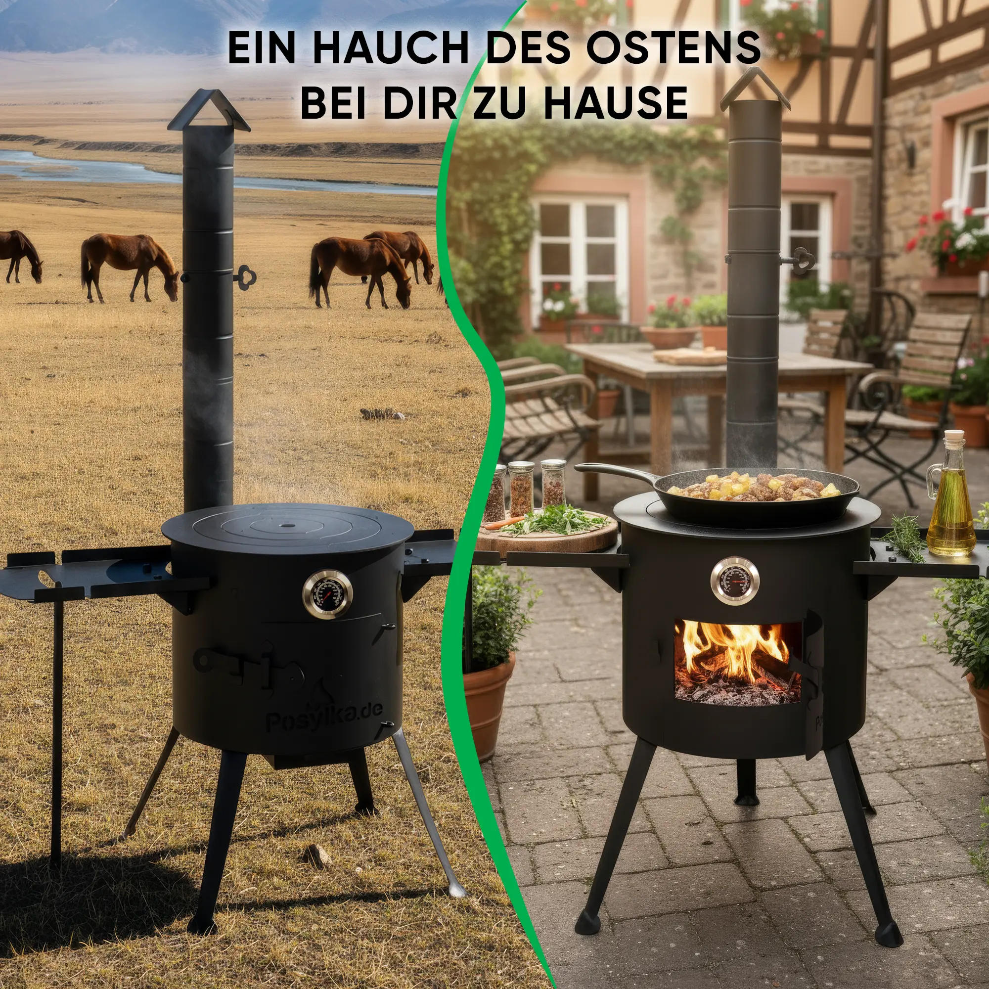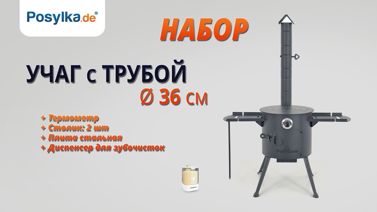 Feuerofen Utschak Ø 36 cm mit Abzugsrohr, für Kasan 10 L, Thermometer, Ablagetischen, Ofenplatte