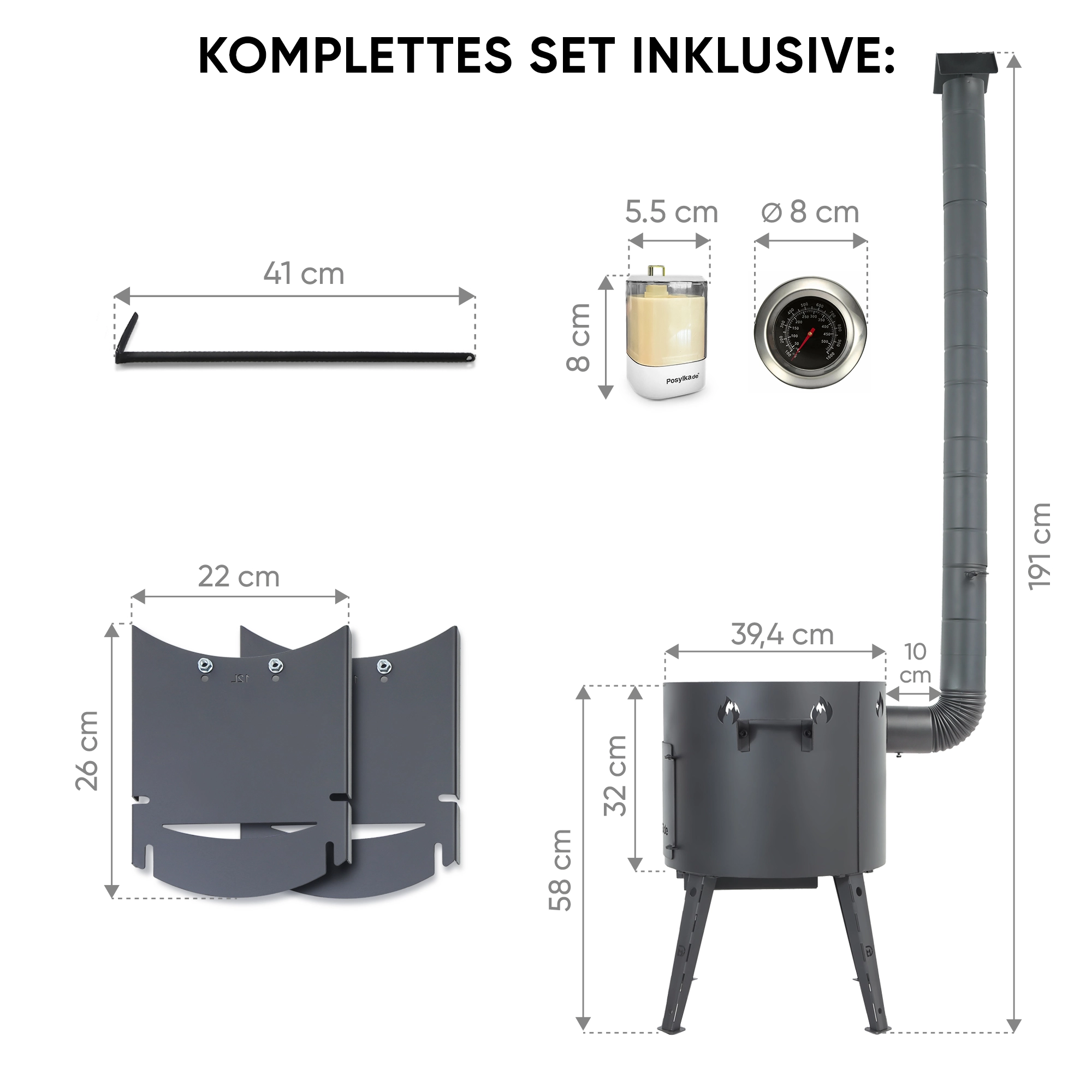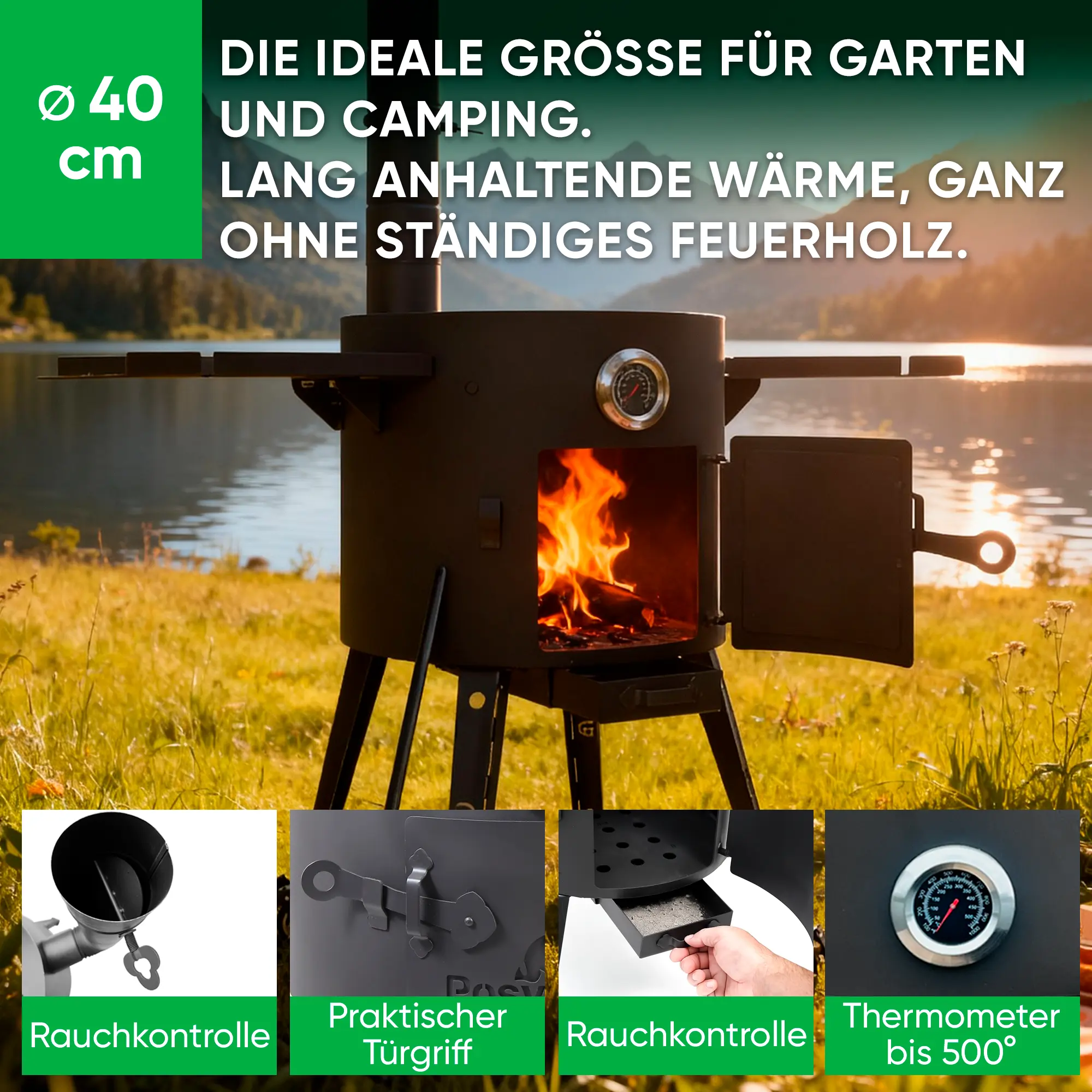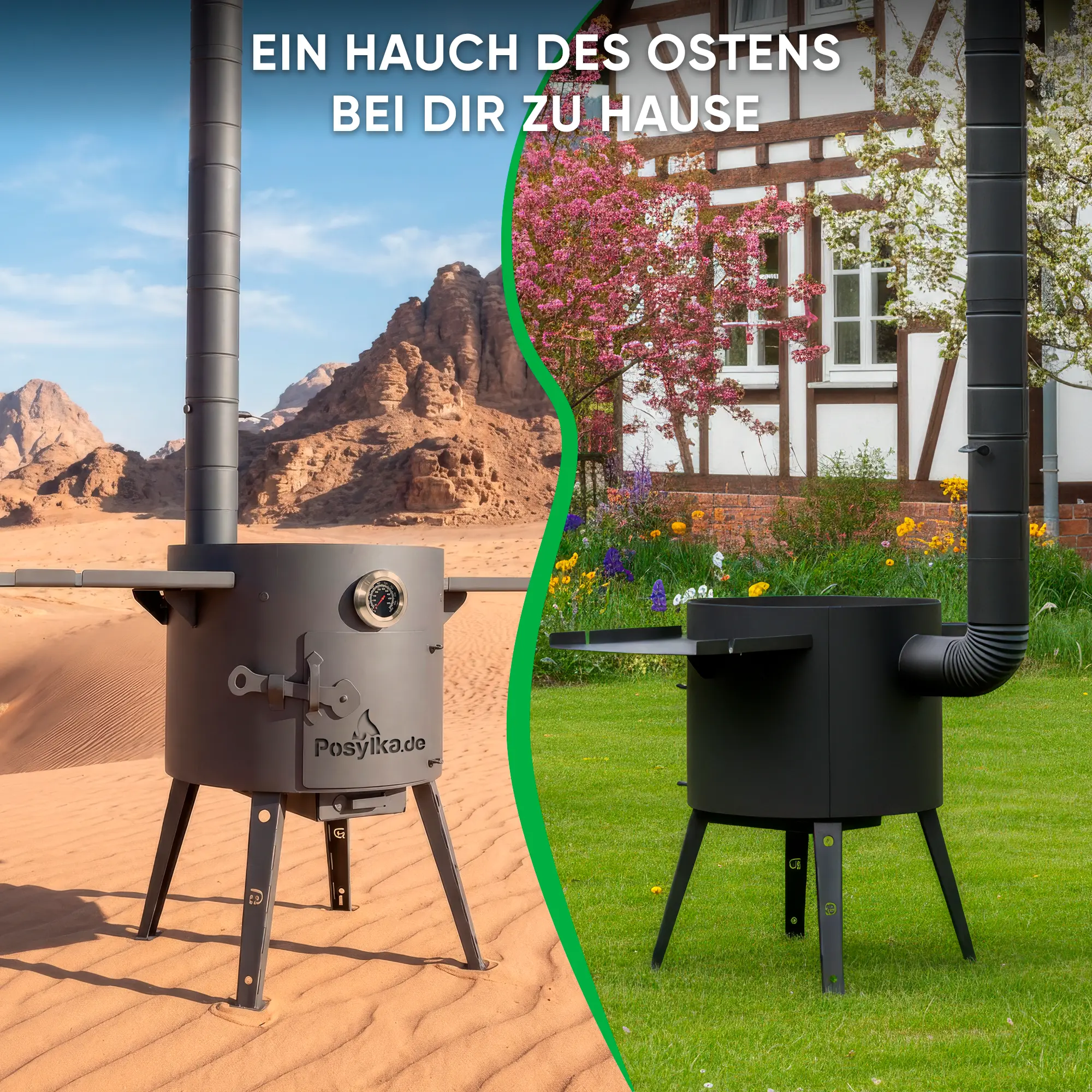 Feuerofen Utschak Ø 40 cm mit Abzugsrohr, für Kasan 12 L, Ablagetischen