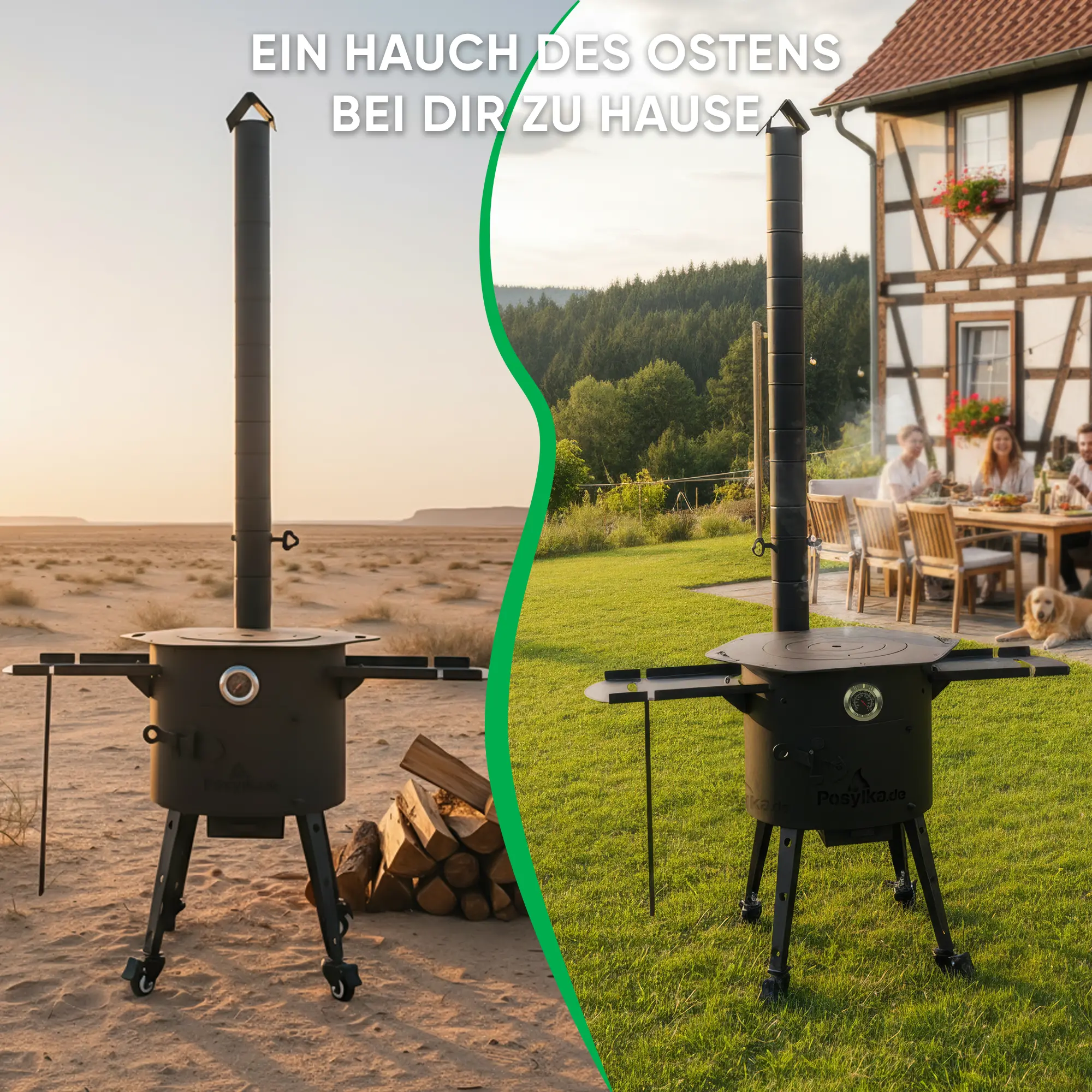 Wenn Sie einen kompakten, leicht transportierbaren und äußerst vielseitigen Feuerkochplatz suchen, ist dieses Set die ideale Wahl. Perfekt für kleine Familien, Camping-Trips und gemütliche Outdoor-Abende. Mit diesem Set kochen Sie nicht nur traditionell im Kessel (Kasan), sondern nutzen die Feuerstelle auch für Töpfe oder für aromatisches Grillen über offener Flamme – ein echtes Erlebnis für Genießer.