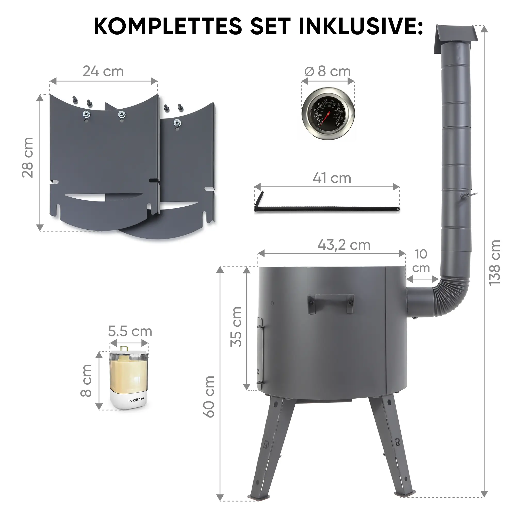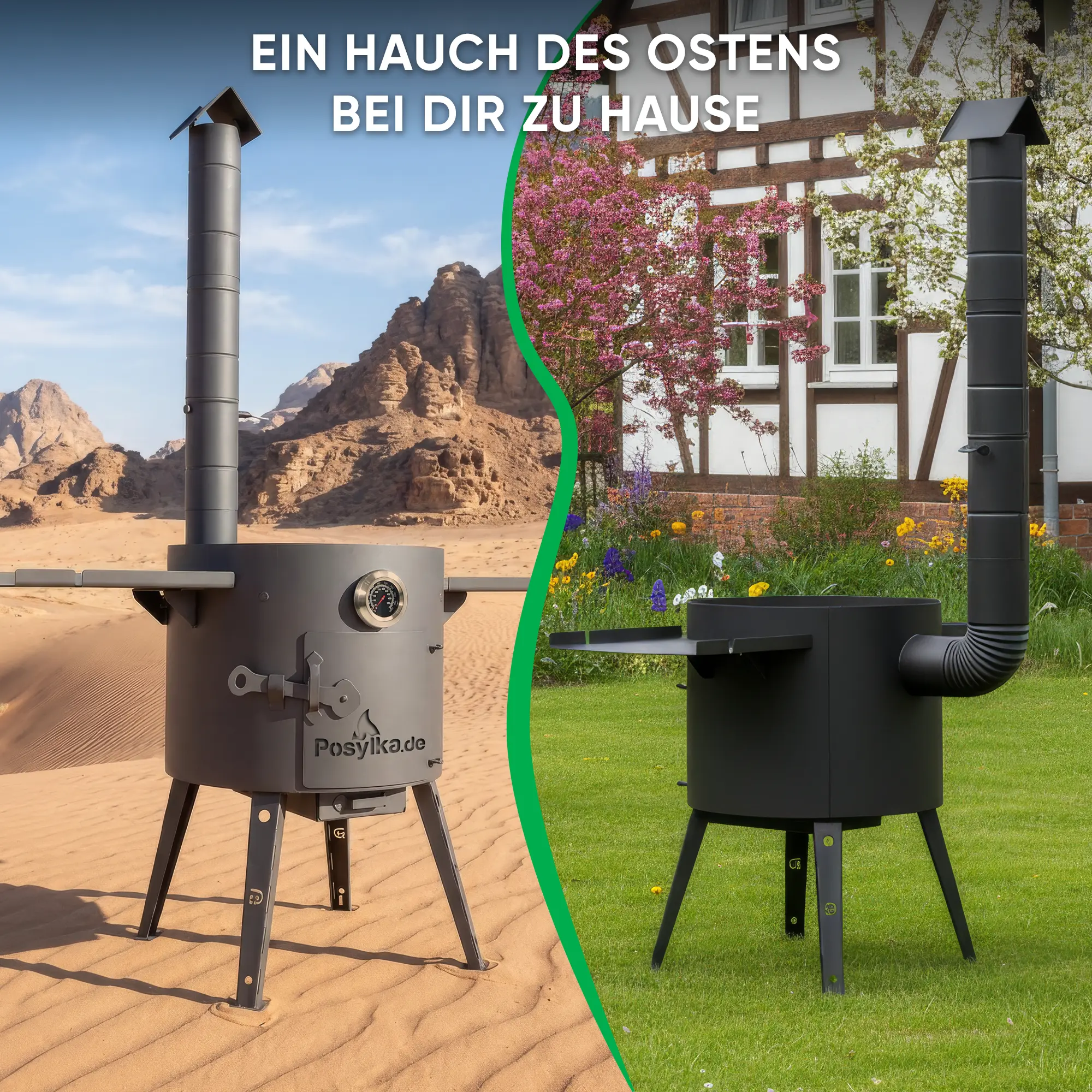 Feuerofen Utschak Ø 44 cm mit Abzugsrohr, für Kasan 16 l, Thermometer, Ablagetischen,