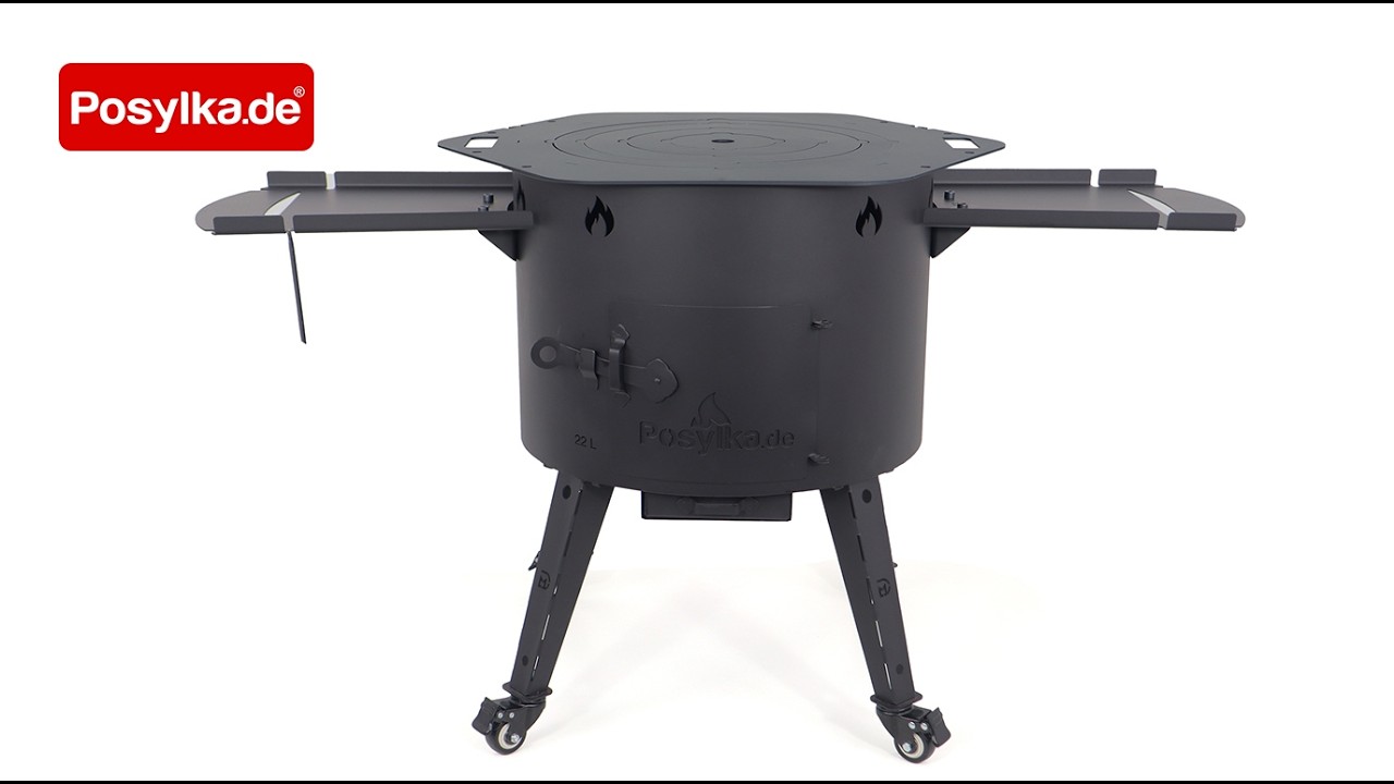 Feuerofen Utschak Ø 49 cm, für Kasan 22 L, Transportrollen, Ablagetischen, Ofenplatte