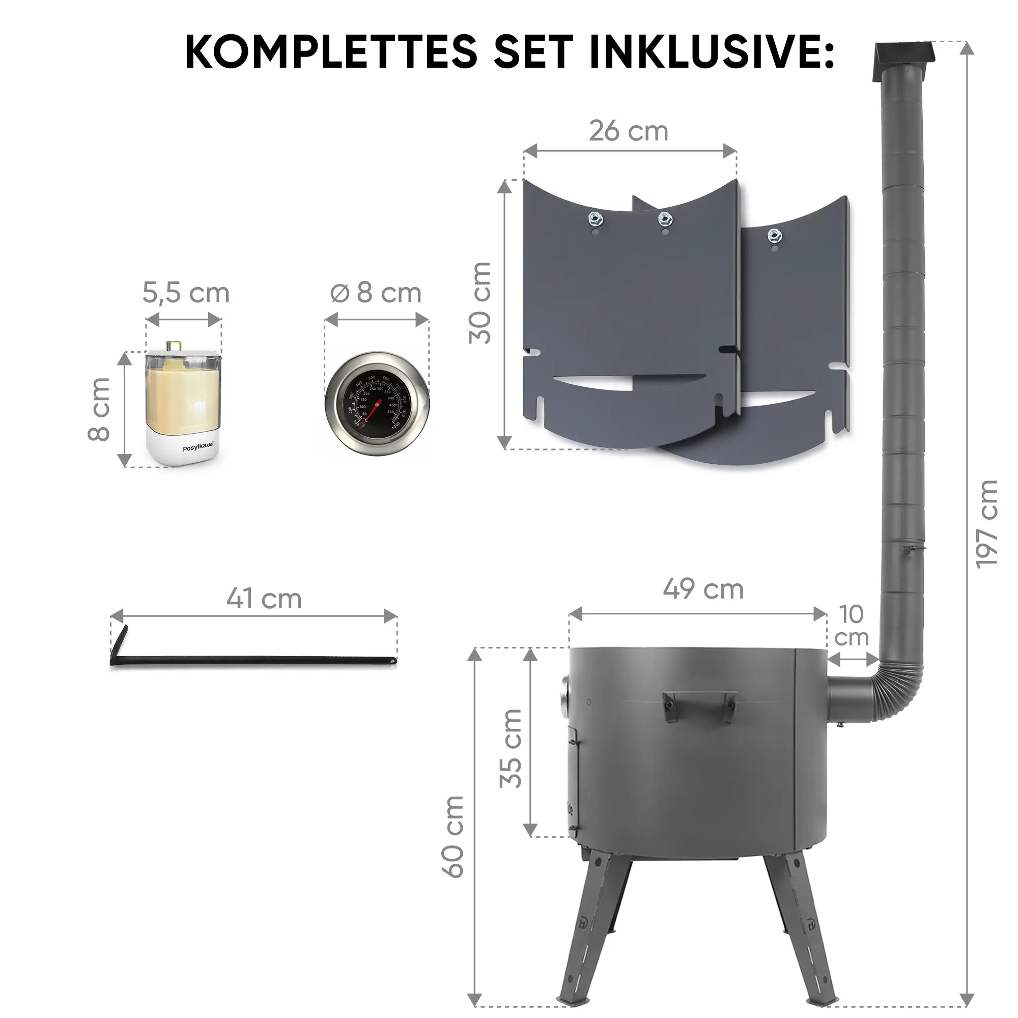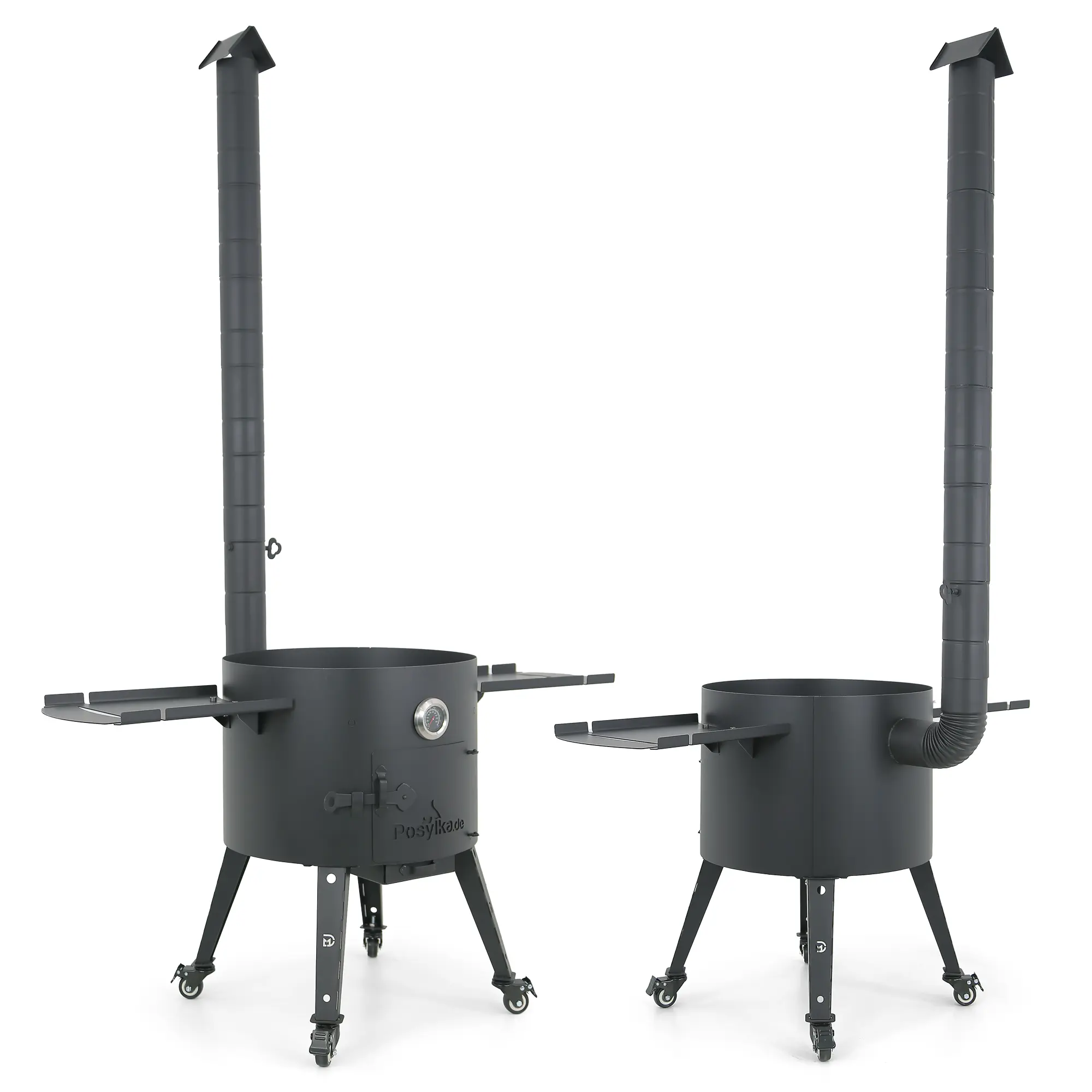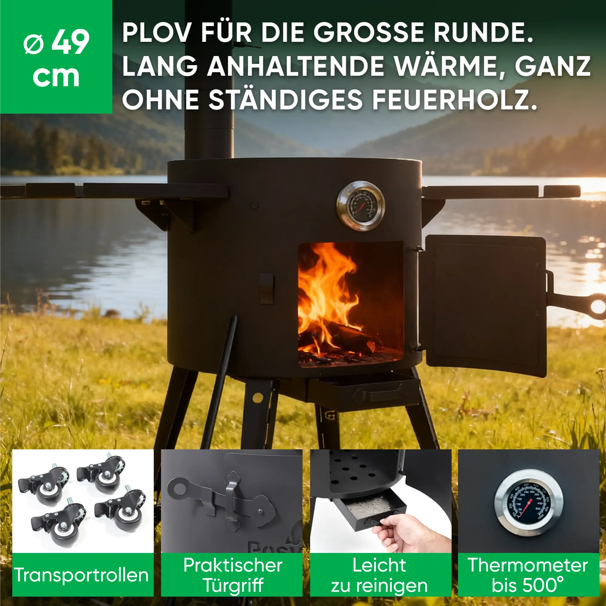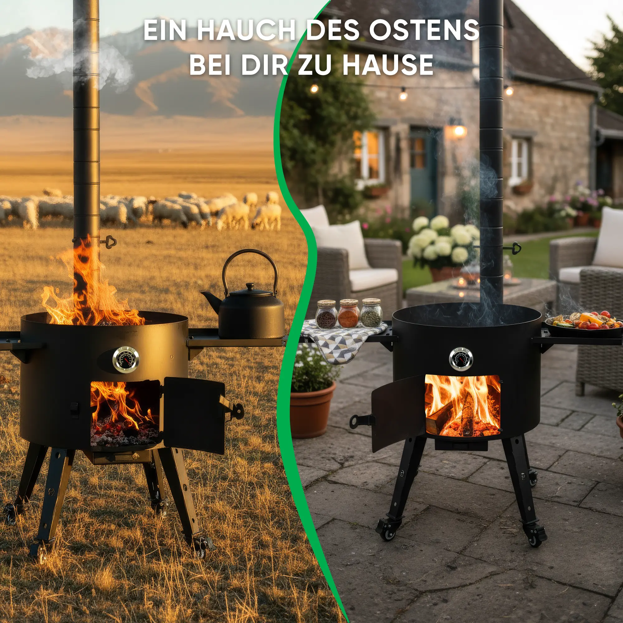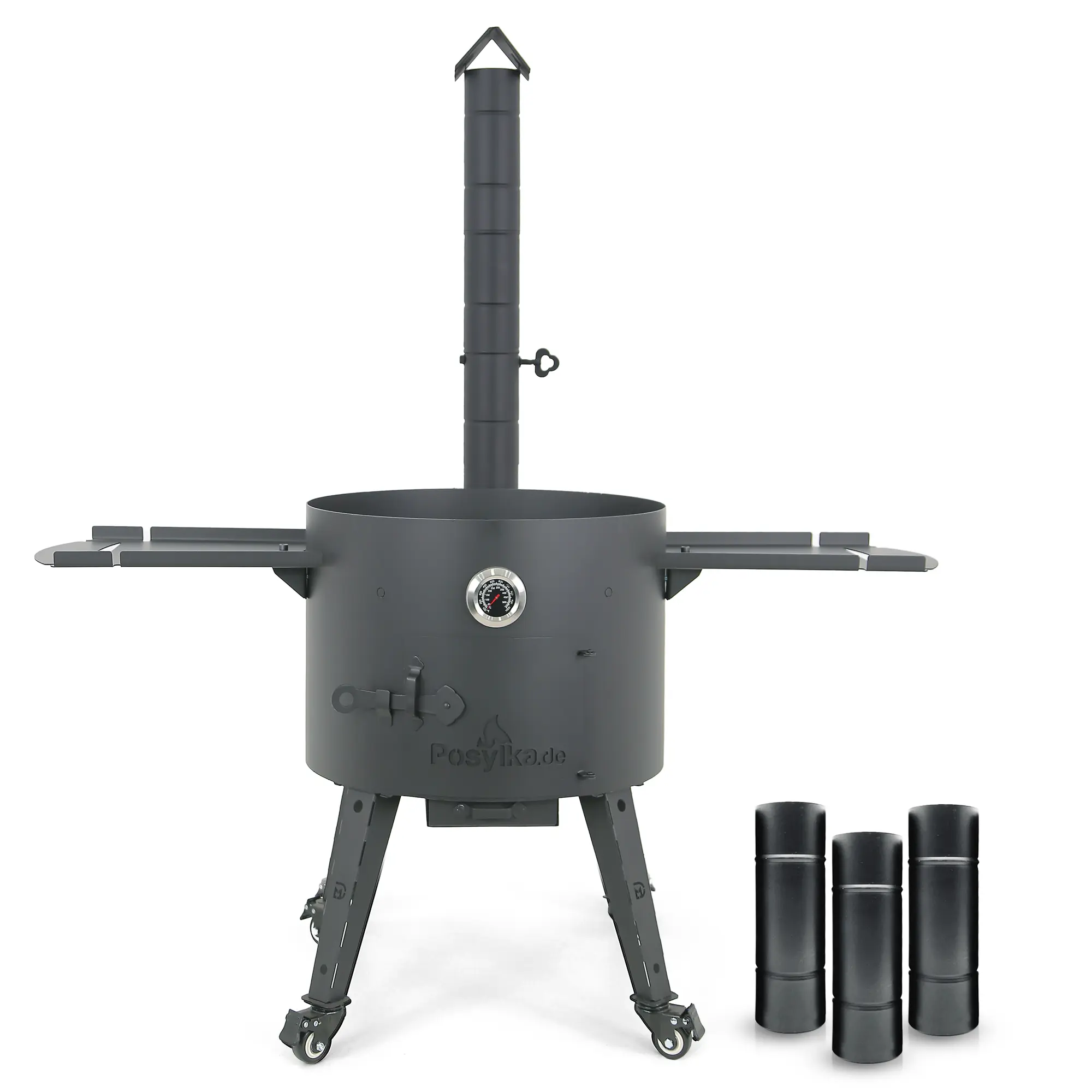 Feuerofen Utschak Ø 49 cm mit Abzugsrohr, für Kasan 22 L ,Thermometer, Transportrollen, Ablagetischen,
