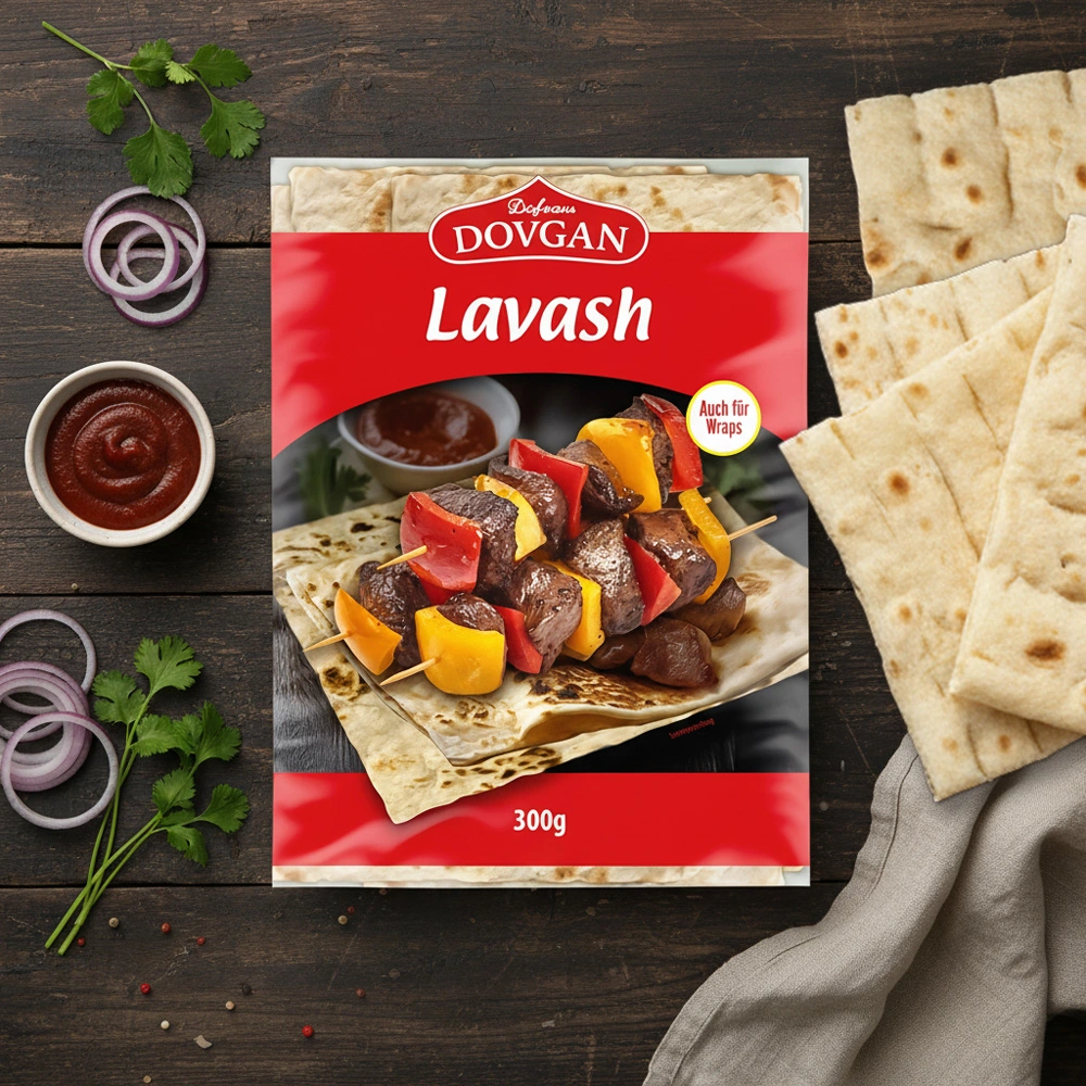 DOVGAN Lavash ist ein traditionelles Fladenbrot, das aus hochwertigem Weizenmehl hergestellt wird. Mit seiner weichen, elastischen Textur eignet es sich ideal als Beilage, zum Füllen, Rollen oder Überbacken. Ob als Wrap, Sandwich, zum Grillen oder für kreative Snacks – Lavash ist unglaublich vielseitig und bringt Abwechslung auf den Tisch.