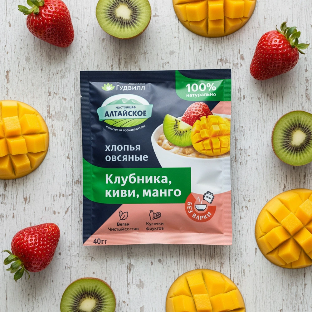 Haferflocken mit Erdbeeren, Kiwi und Mango, Gudwill, 40 g