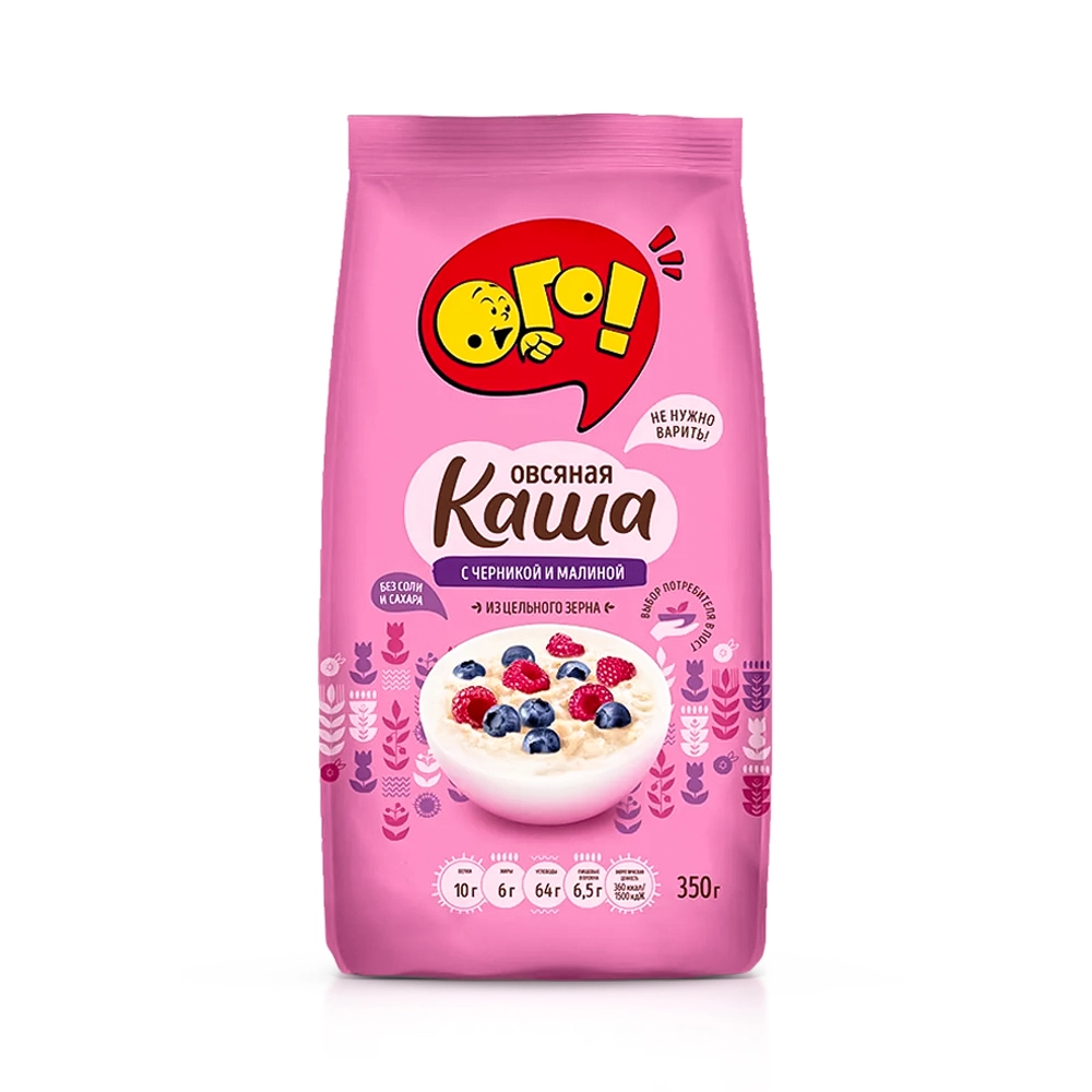 Haferflockenbrei, mit Blaubeeren und Himbeeren, OGO!, 350 g