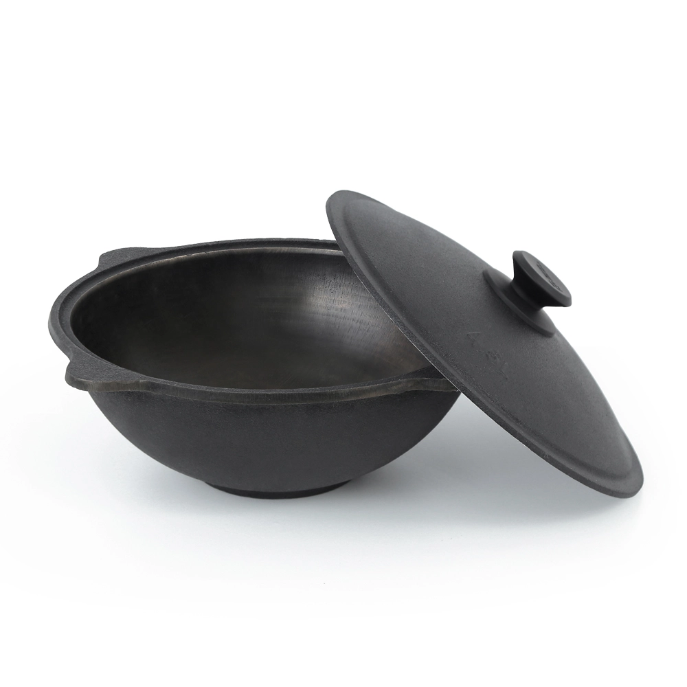 Der flache Boden des Kazan macht ihn zu einem universellen Werkzeug für jede Küche. Sie können ihn nicht nur auf dem Herd oder dem Dreifuß verwenden, sondern auch auf einem Standardherd oder im Backofen.