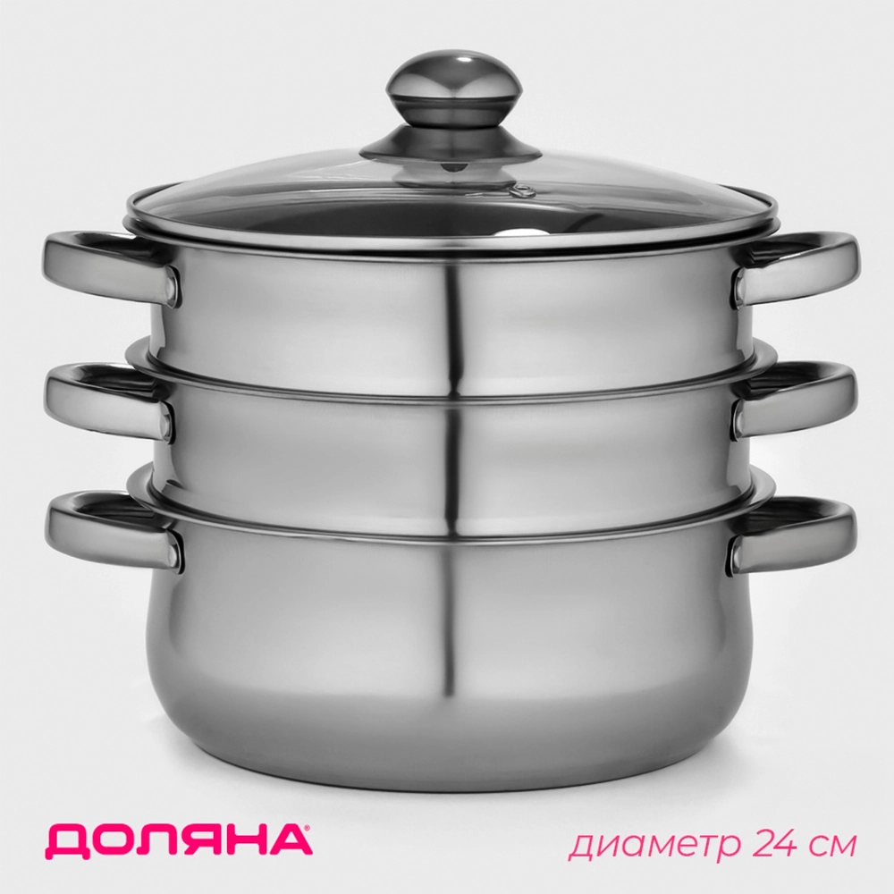 Mantykocher - Dampfgarer - Classic, Edelstahl, 3 Ebenen, Ø 24 cm