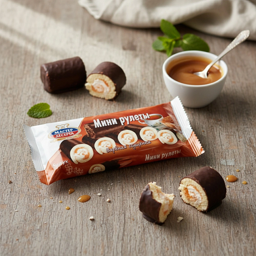 Очень вкусные рулетики. Бисквит мягкий, сгущенка нежная. Понравилось.