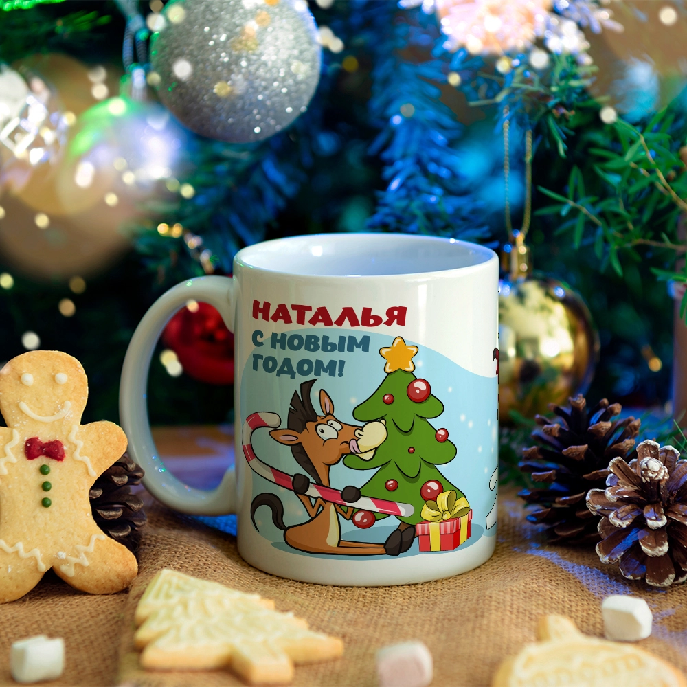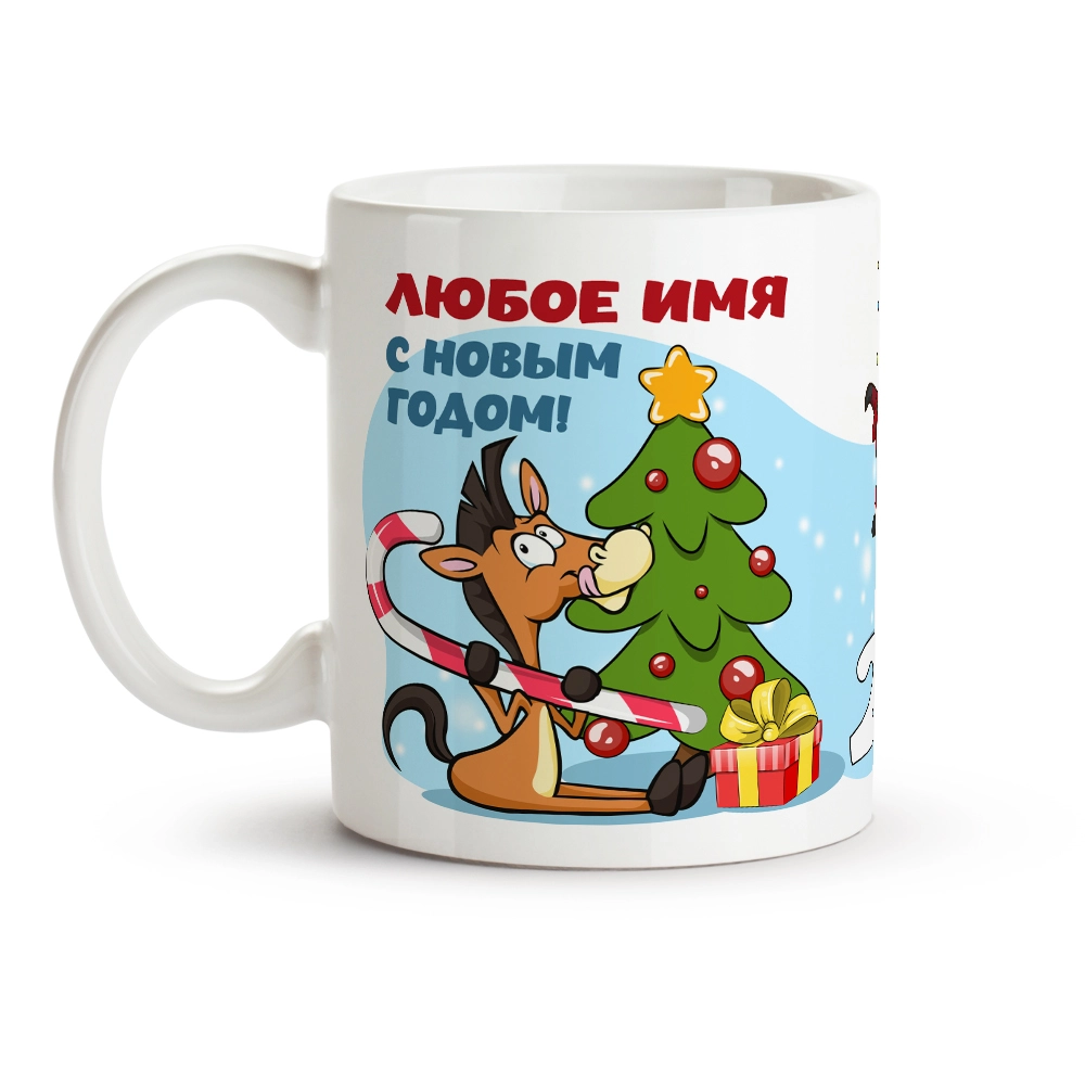 Namenstasse - Frohes Neues Jahr! Pferdchen mit Lutscher, Keramik, 330 ml