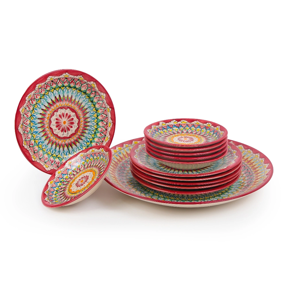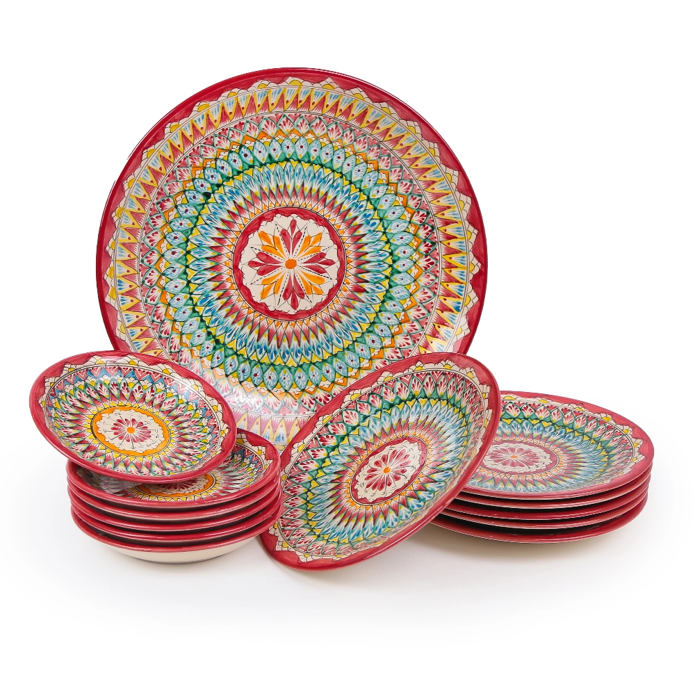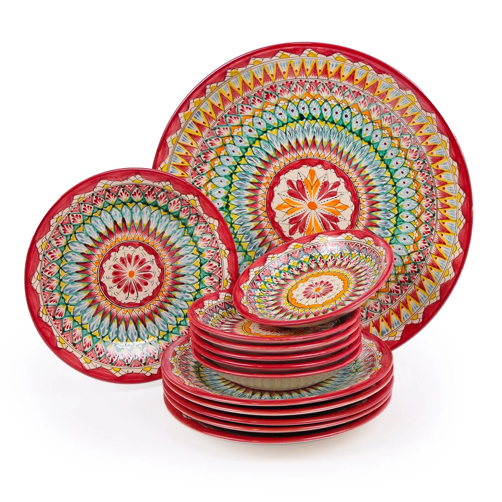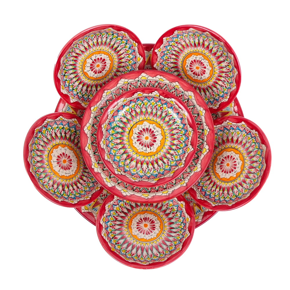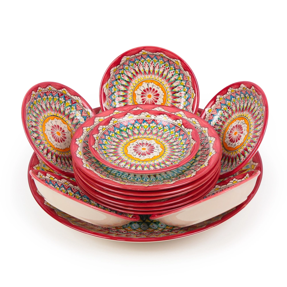 Plow-Geschirrset – Mehrob Rot – MSV2 – RA – Rishtan Keramik, 13-teilig