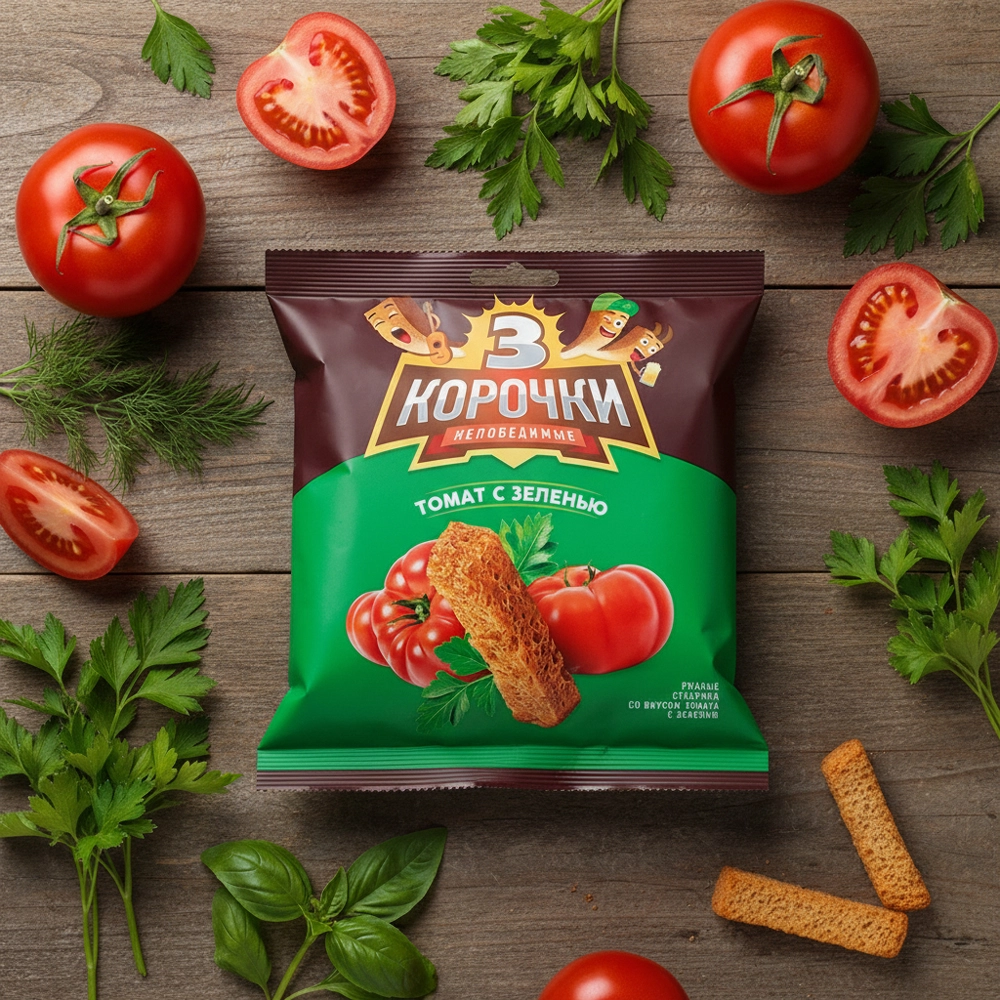 Roggen-Croutons - Tri Korotschki, mit Tomaten- und Gemüsegeschmack, 100 g