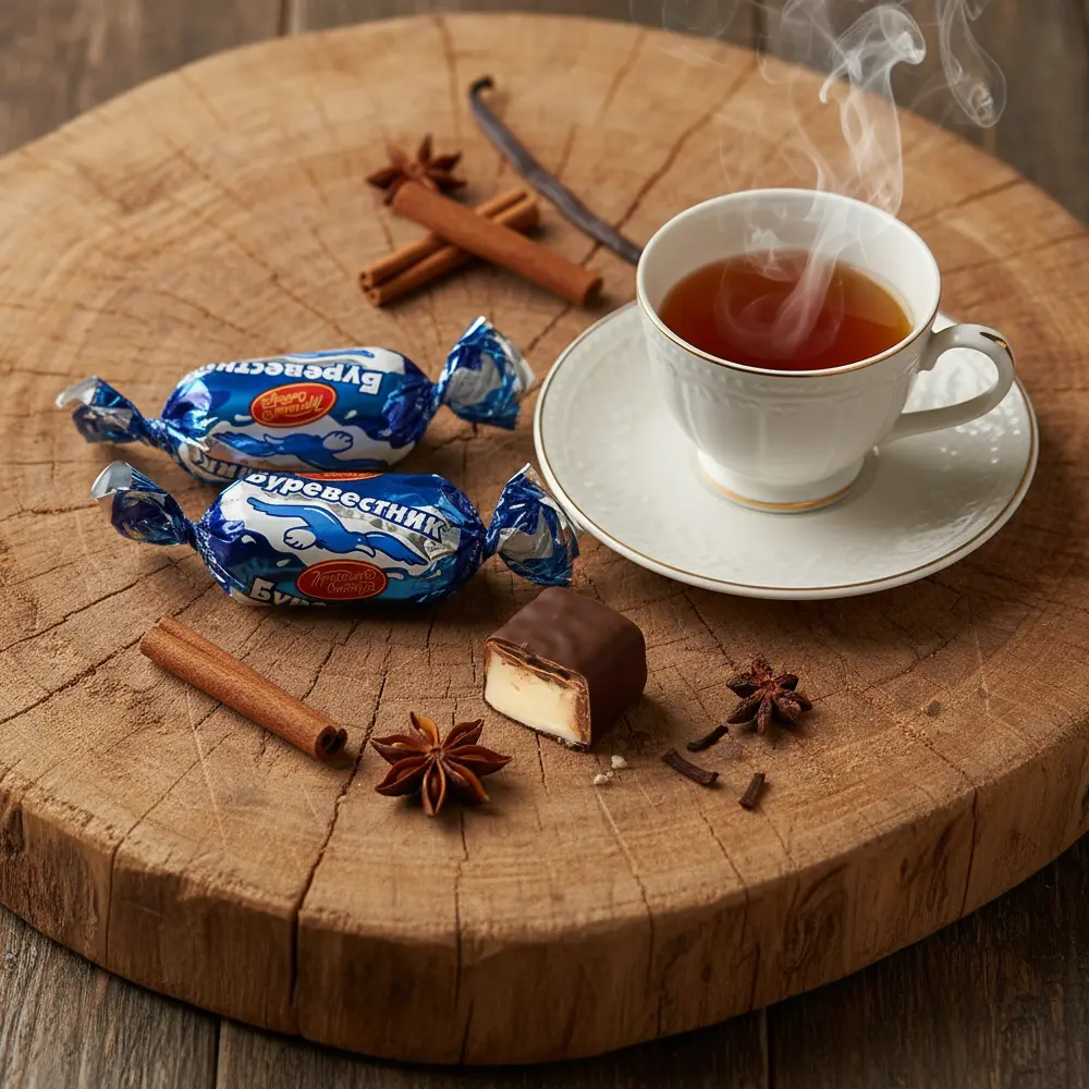 Das ist genau der "Буревестник" aus meiner Kindheit, nur, scheint mir, noch leckerer. Ein sehr intensiver Sahne-Vanille-Geschmack, das Aroma ist wie bei gezuckerter Kondensmilch))) Ich liebe diese Pralinen und bestelle sie sehr oft!