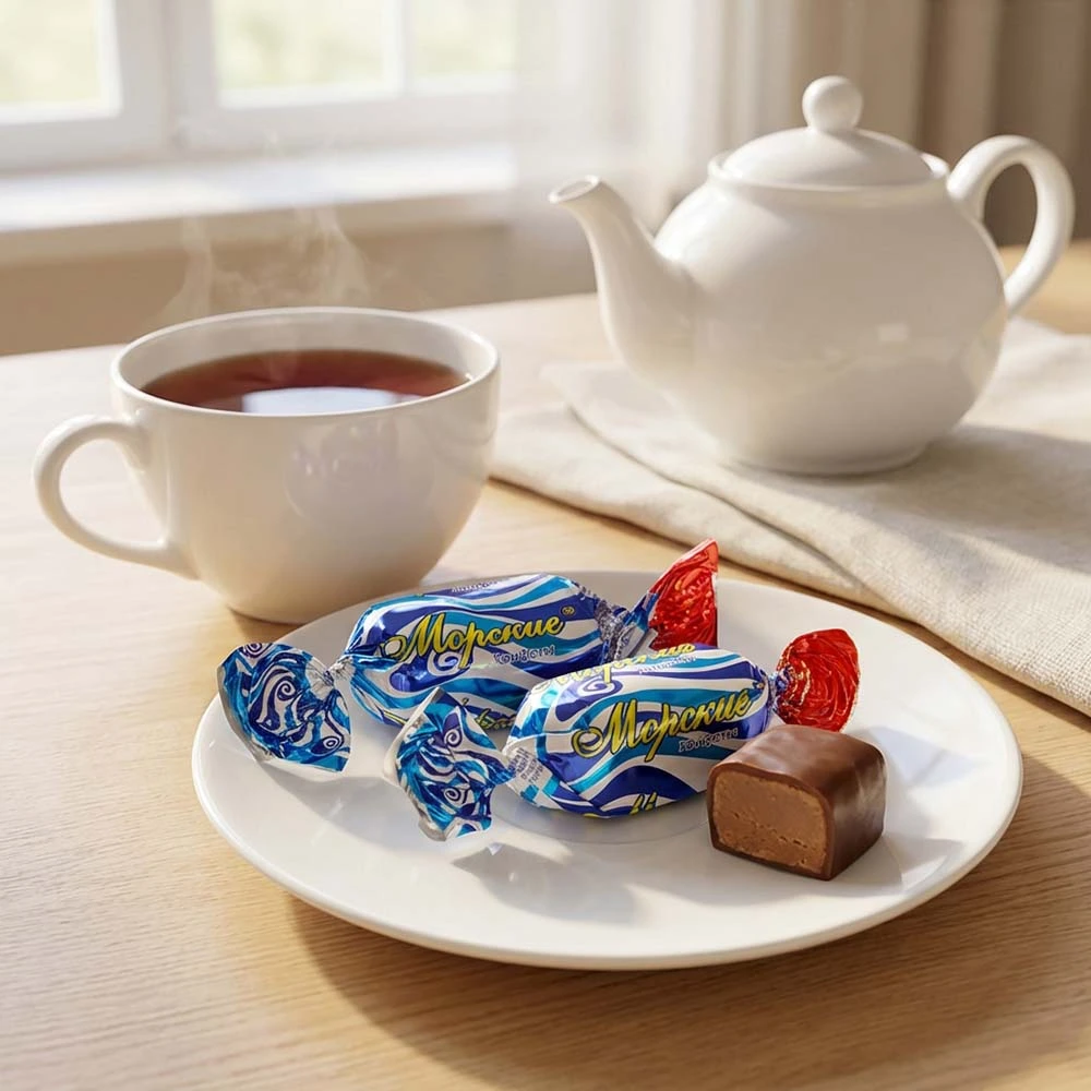 Спасибо за прекрасные, великолепные, свежие Конфеты "Морские". Мне они очень нравятся ещё с России , где их только можно было по "БЛАТУ" купить