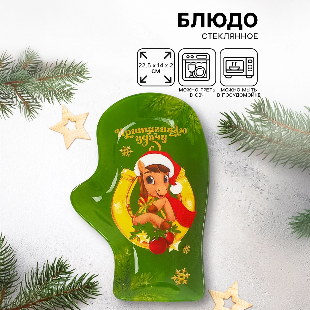Servierplatte - Fäustling. Ich ziehe Glück an, Glas, 22,5 x 14 x 2 cm