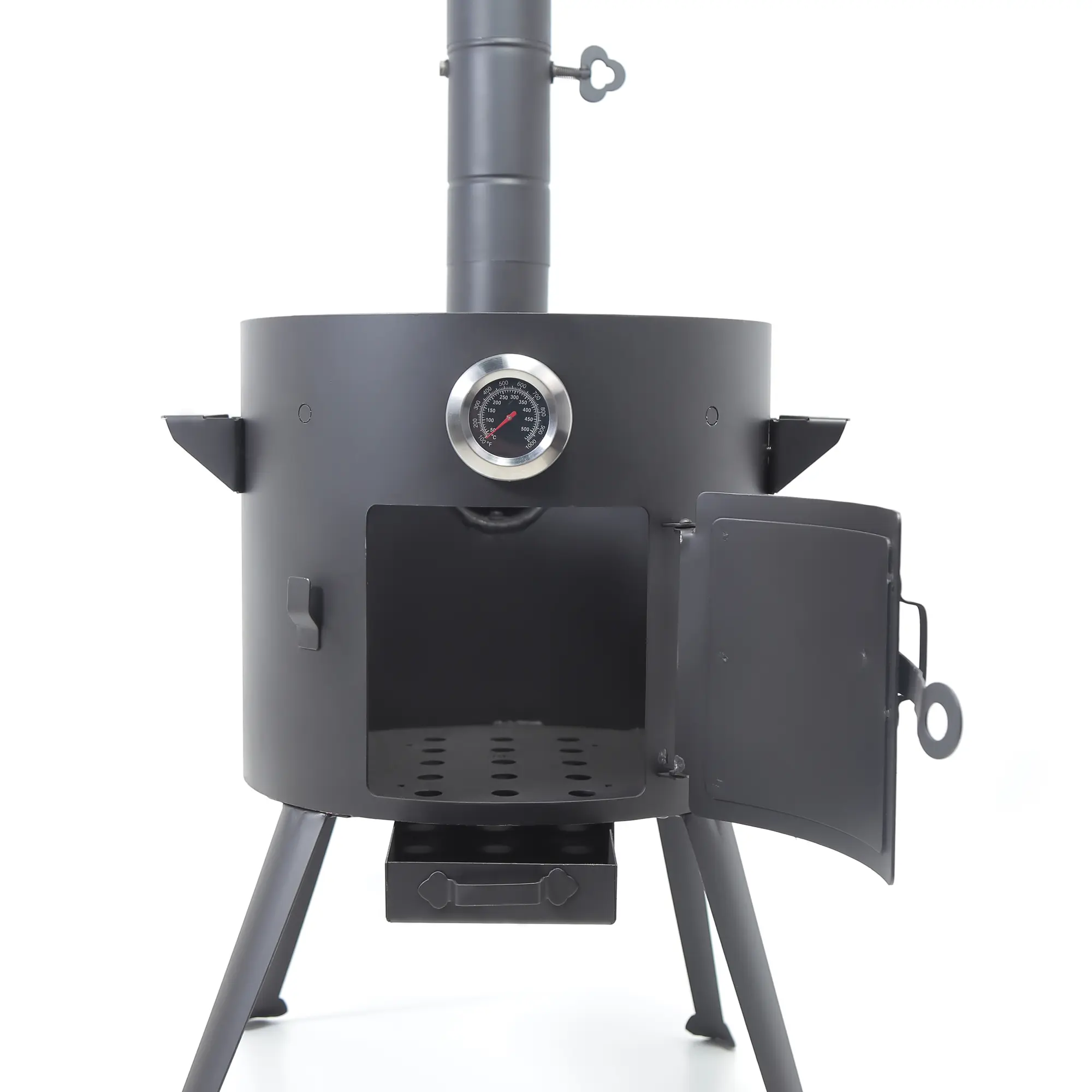 Der Feuerofen umfasst einen Metallkorpus, abnehmbare Beine, Tür, Schürhaken und Rost. Aufgrund der optimalen Wandstärke (2 mm) ist die Möglichkeit einer Verformung der Produktwände ausgeschlossen.