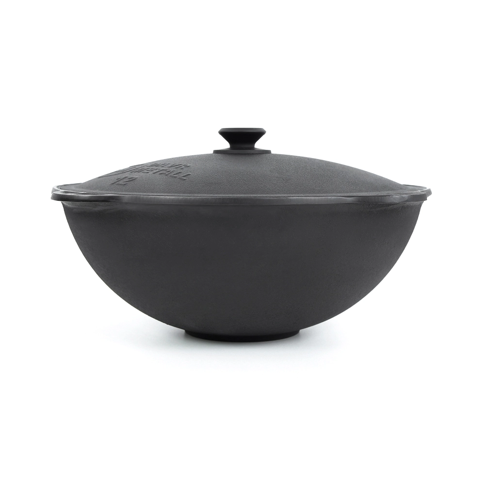 Set - Feuerofen- KazanoFF, für usbekischen Kasan 12 Liter, Ø 40 cm + Gusseisenkasan, Aluminiumdeckel, flacher Boden, Ø 42,5 cm, 12 l + Schaumlöffel 48