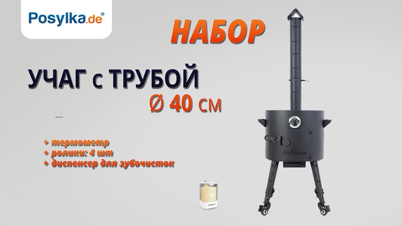Set - Feuerofen mit Rohr Ø 40 cm + Thermometer + Rollen: 4 Stk. + Zahnstocherspender
