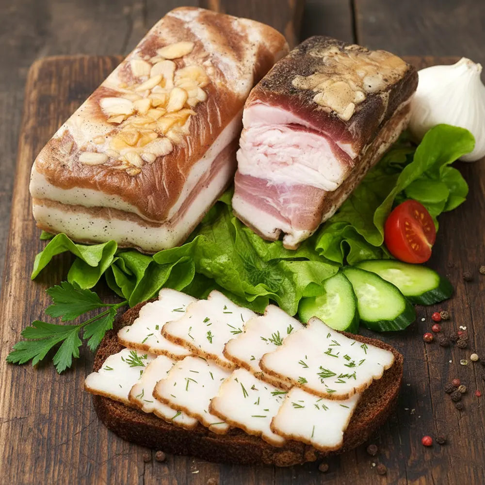 Salz, Knoblauch, Pfeffer, Schweinespeck