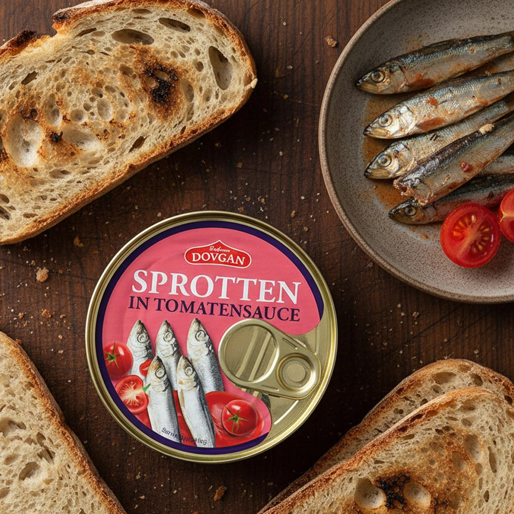 Weizenmehl, Wasser, Zwiebeln, Knoblauch, Rapsöl, Schwarzer Pfeffer, Würze, Zucker, Koriander, Salz, Tomatenmark, Nelken, Lorbeerblätter, Sprotte 60 %, Essigsäure