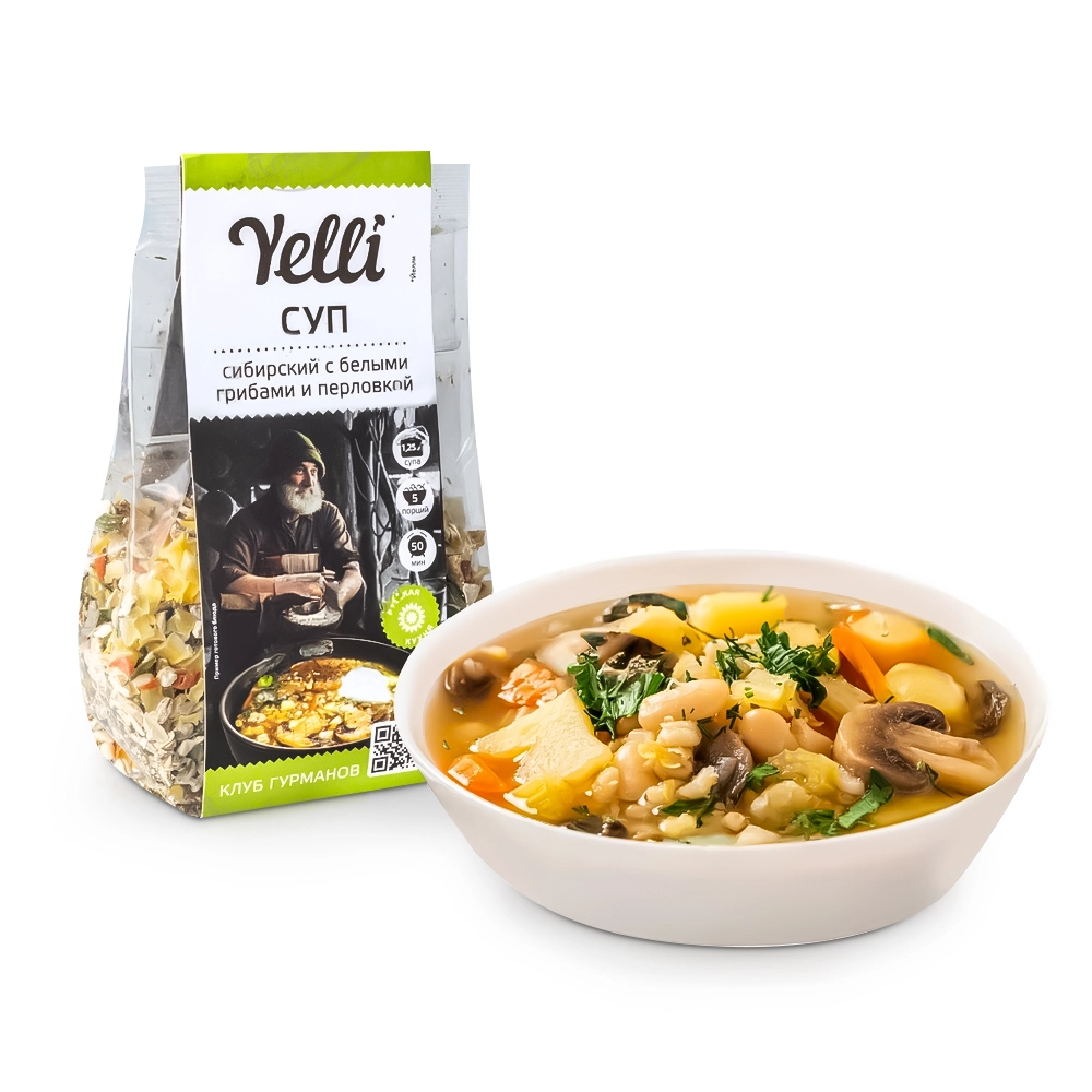 Suppe nach sibirischer Art, aus Perlgraupen und Steinpilze, Yelli, 125 g