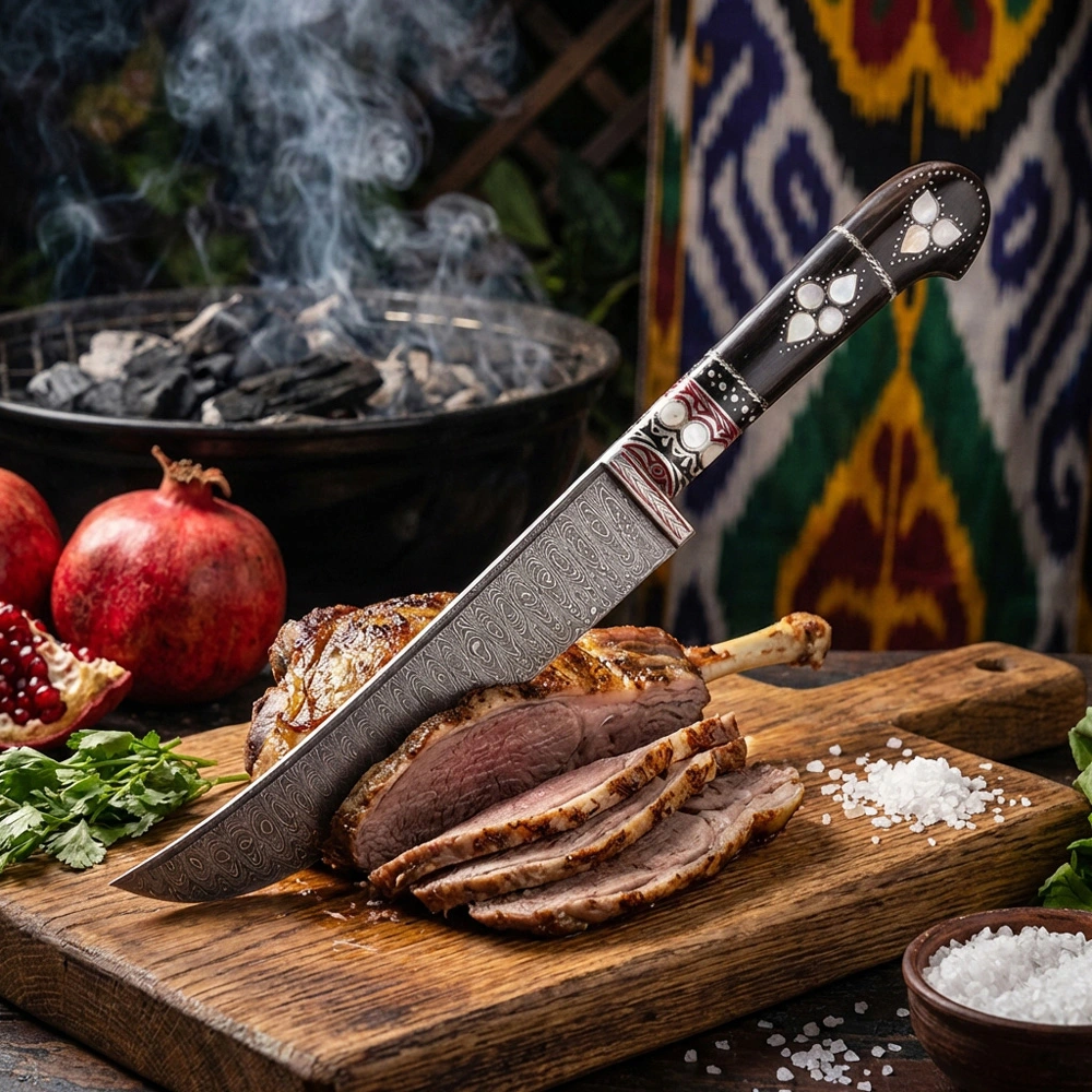 Usbekischer Messer aus Damaststahl – Pchak, 31 cm