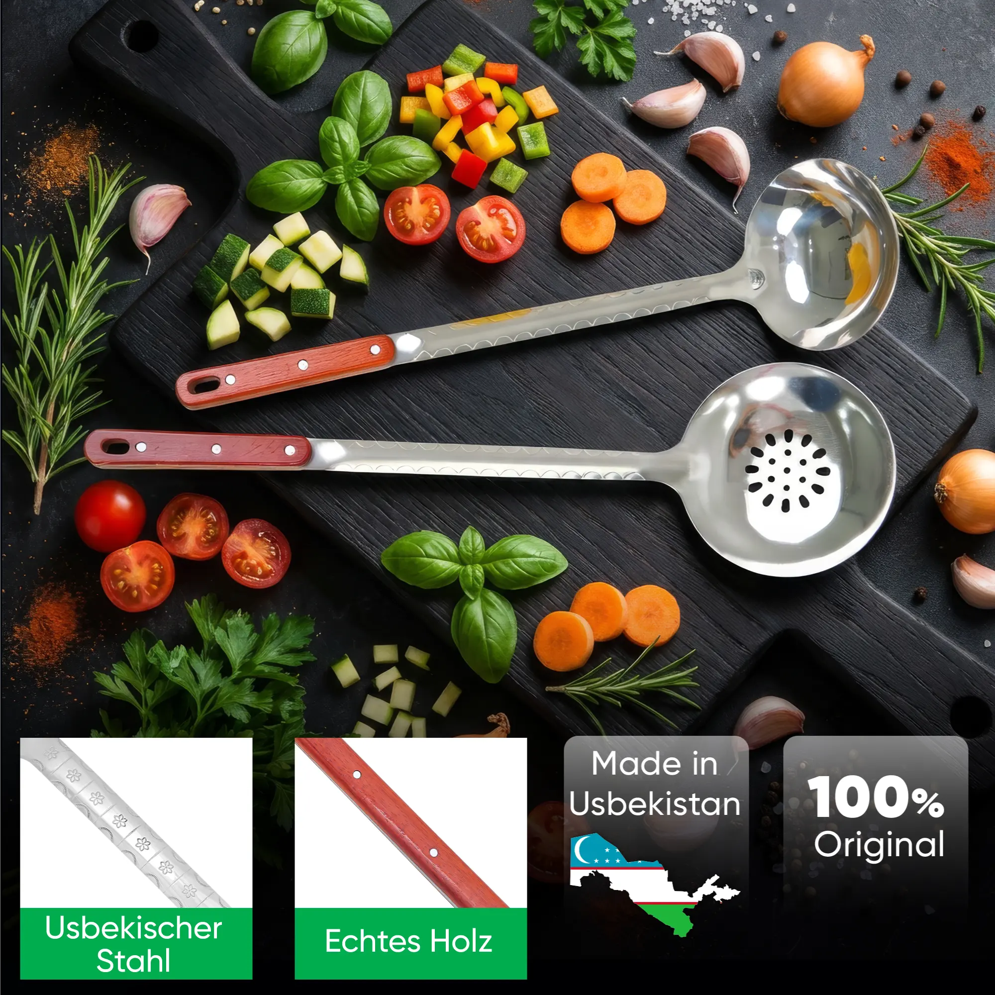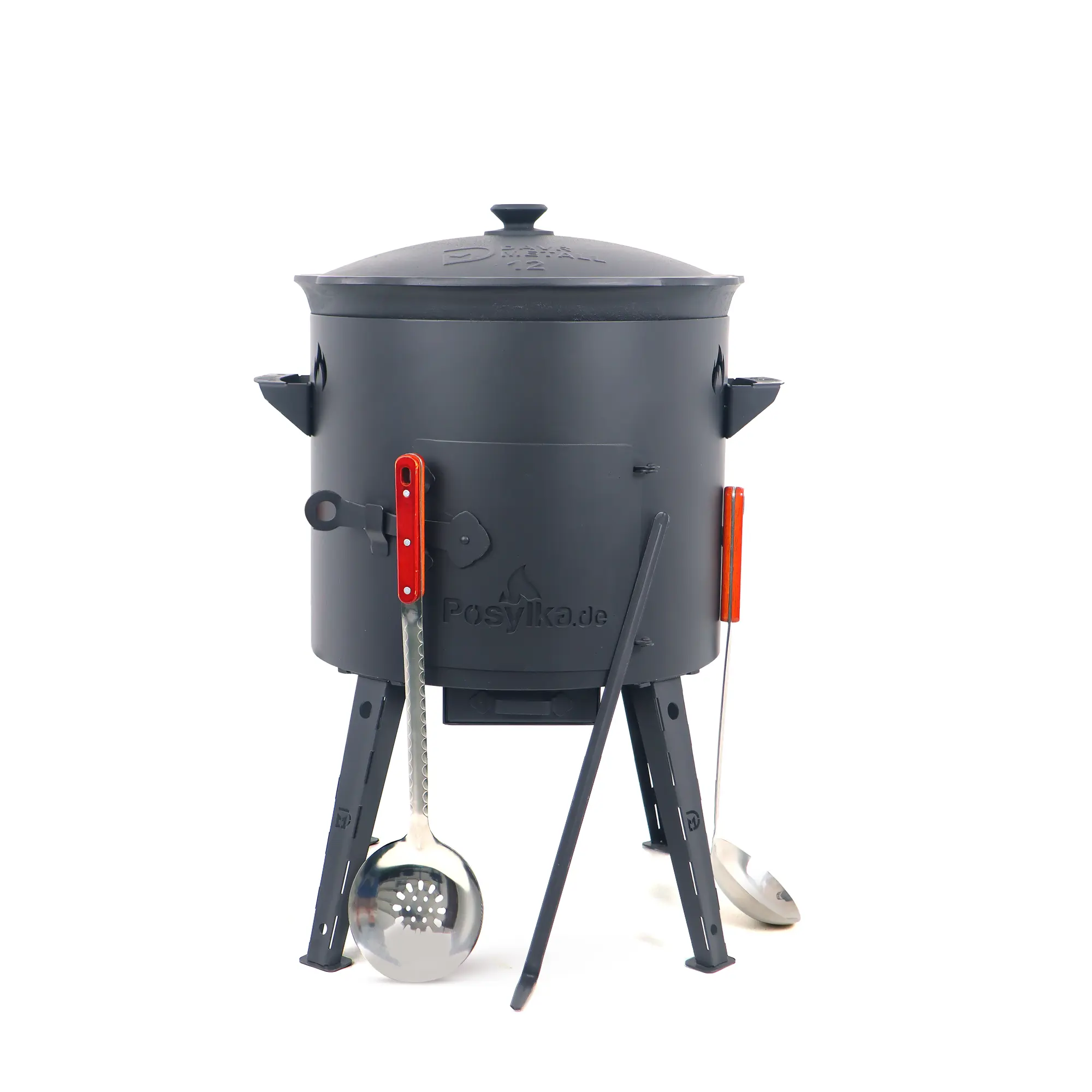 Utschak Feuerofen Ø 40 cm + Gusseisen-Kasan 12 L, Ø 42,5 cm, runder Boden + Küchenzubehör, Usbekischer Kochtopf aus Gusseisen
