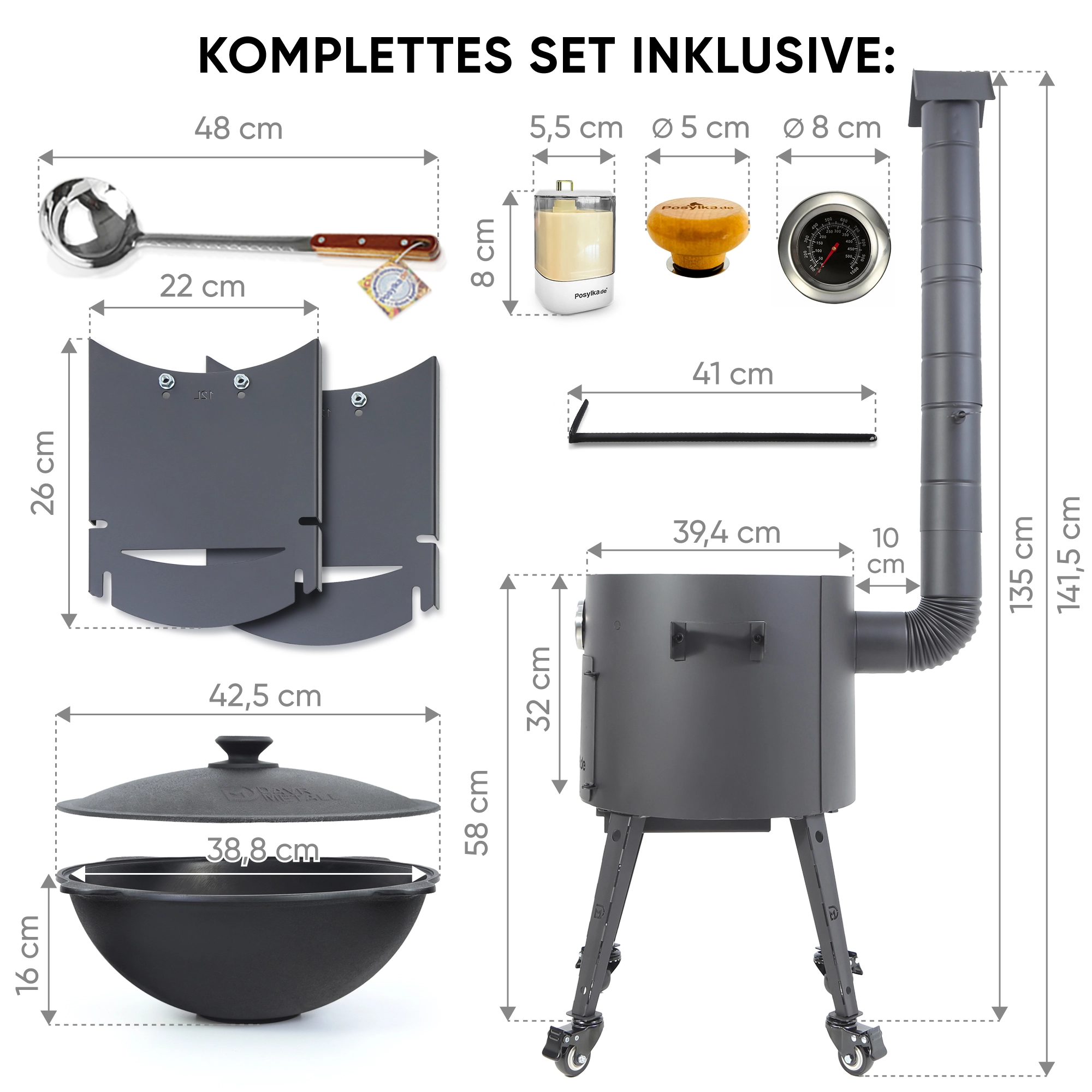Wenn Sie einen kleinen und praktischen Outdoor-Ofen kaufen möchten, der bereits mit einem passenden Kazan/Kessel ausgestattet ist, dann ist dieses Set die beste Wahl. Es eignet sich perfekt für kleine Familien, Ausflüge in die Natur und als ein langlebiges und wirklich wertvolles Geschenk!
