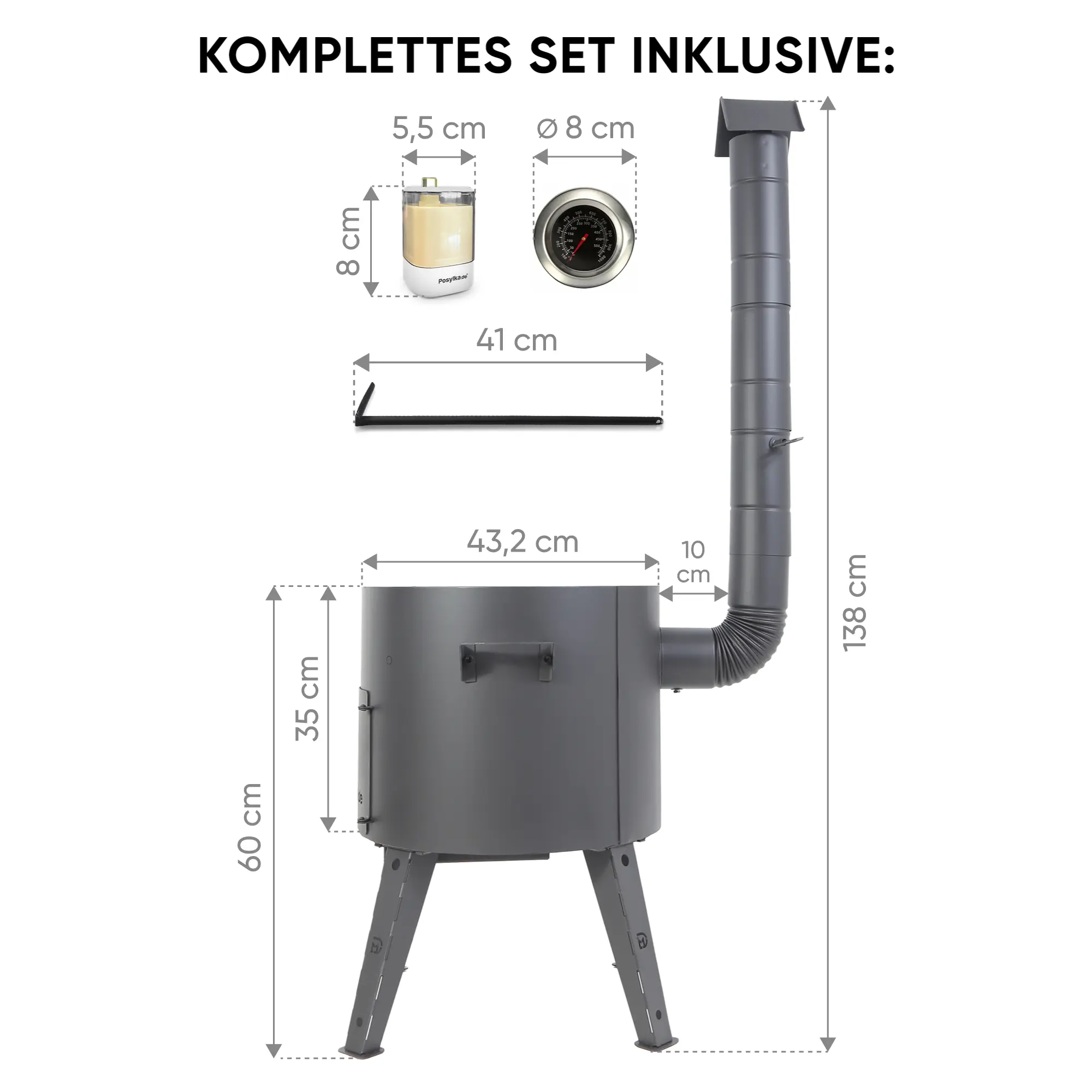 Feuerofen Utschak Ø 44 cm mit Abzugsrohr, für Kasan 16 l, Thermometer