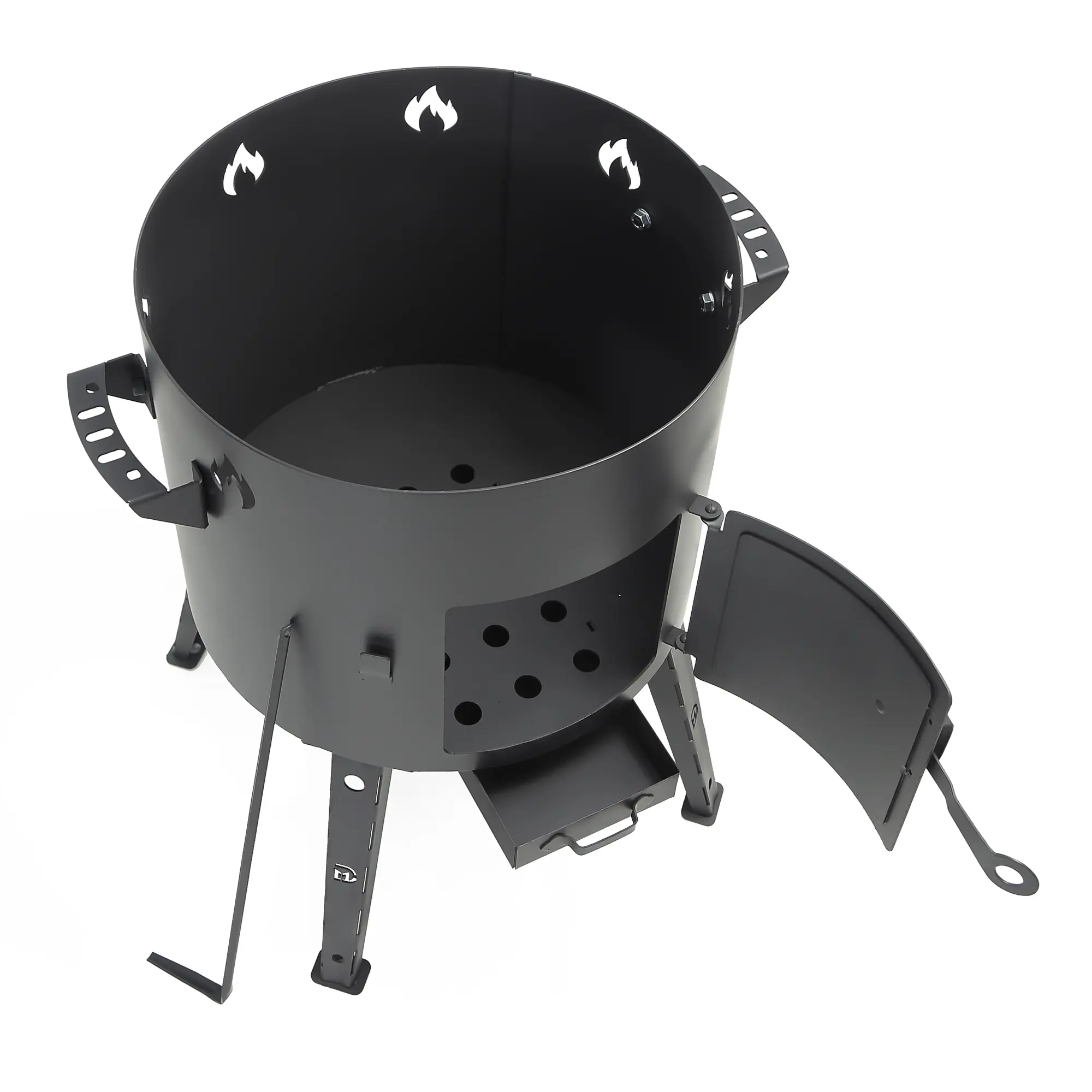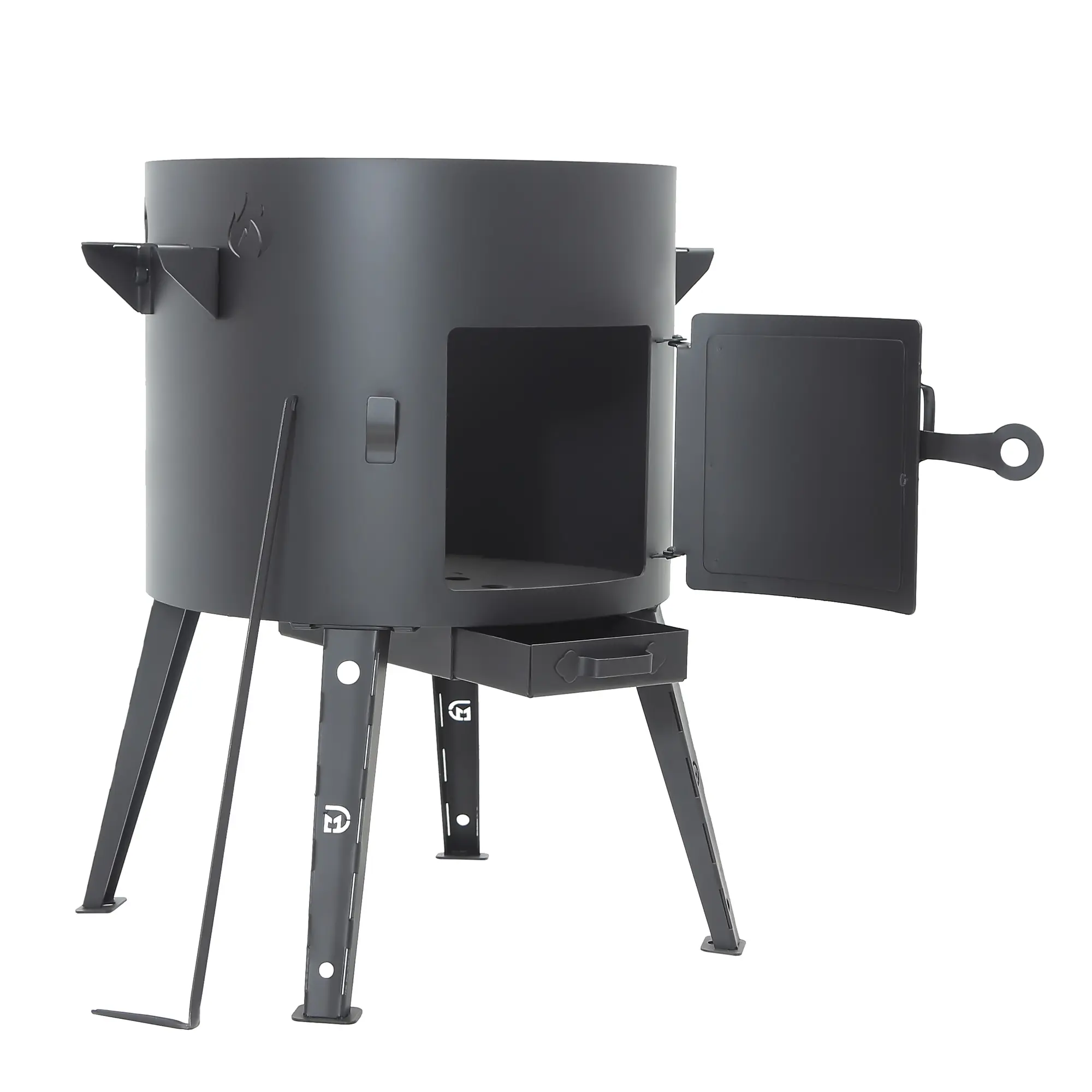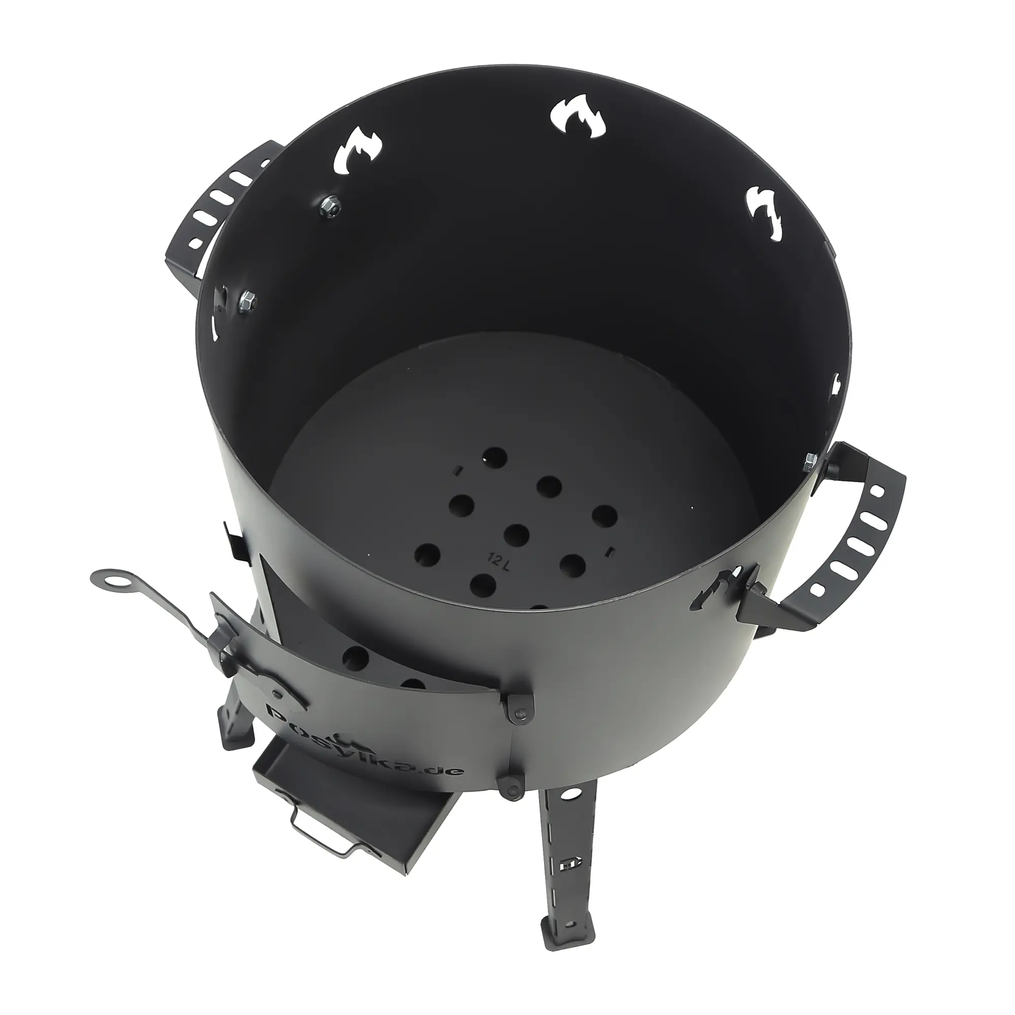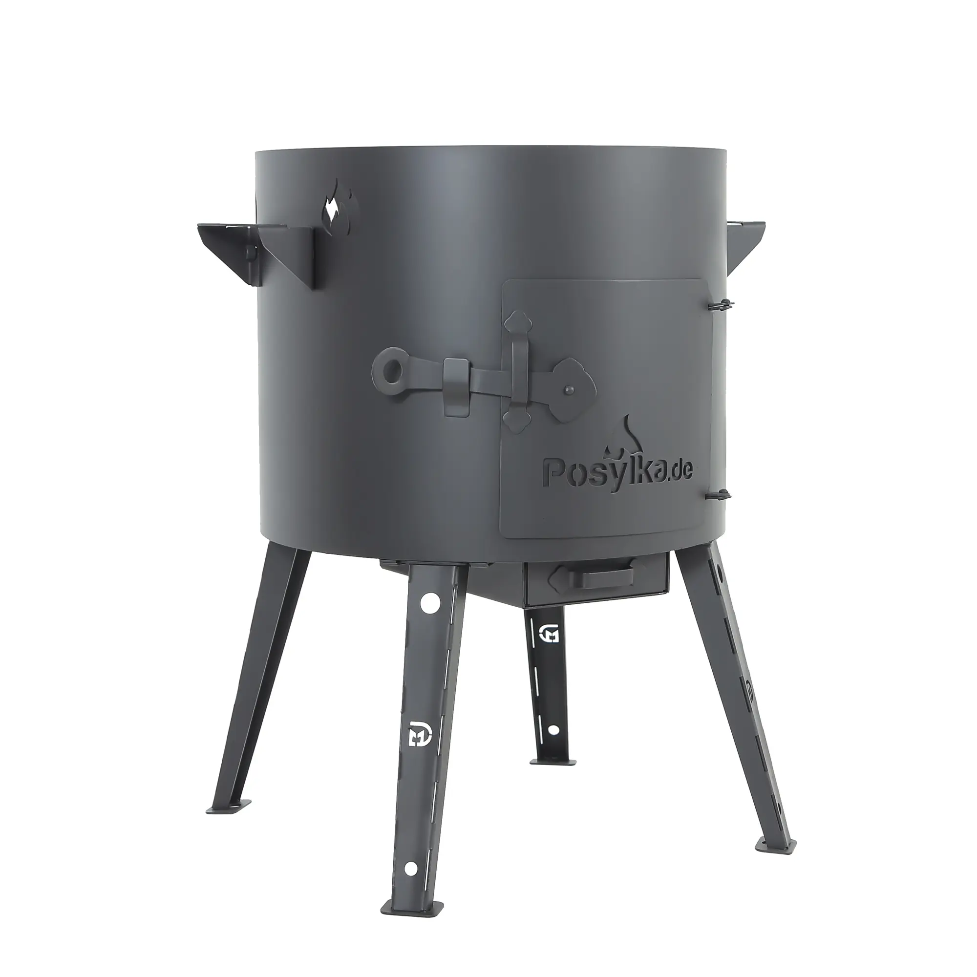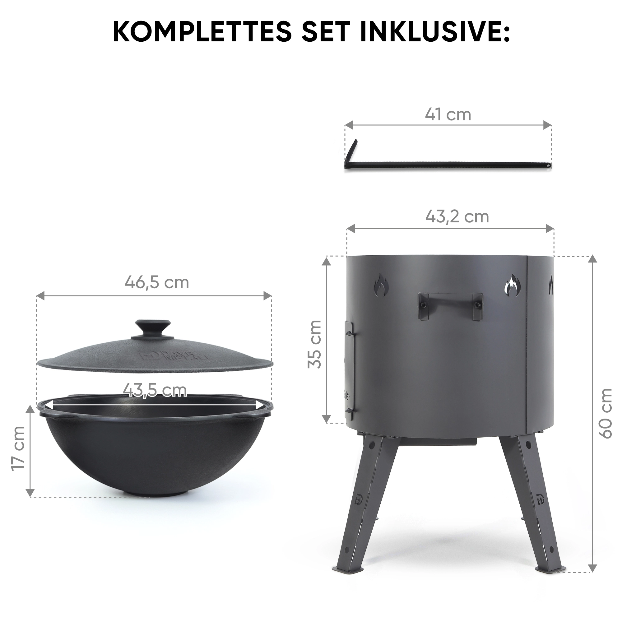 Utschak Feuerofen Ø 44 cm + Gusseisen-Kasan 16 l, Ø 46,5 cm, flacher Boden + Küchenzubehör, Usbekischer Kochtopf aus Gusseisen