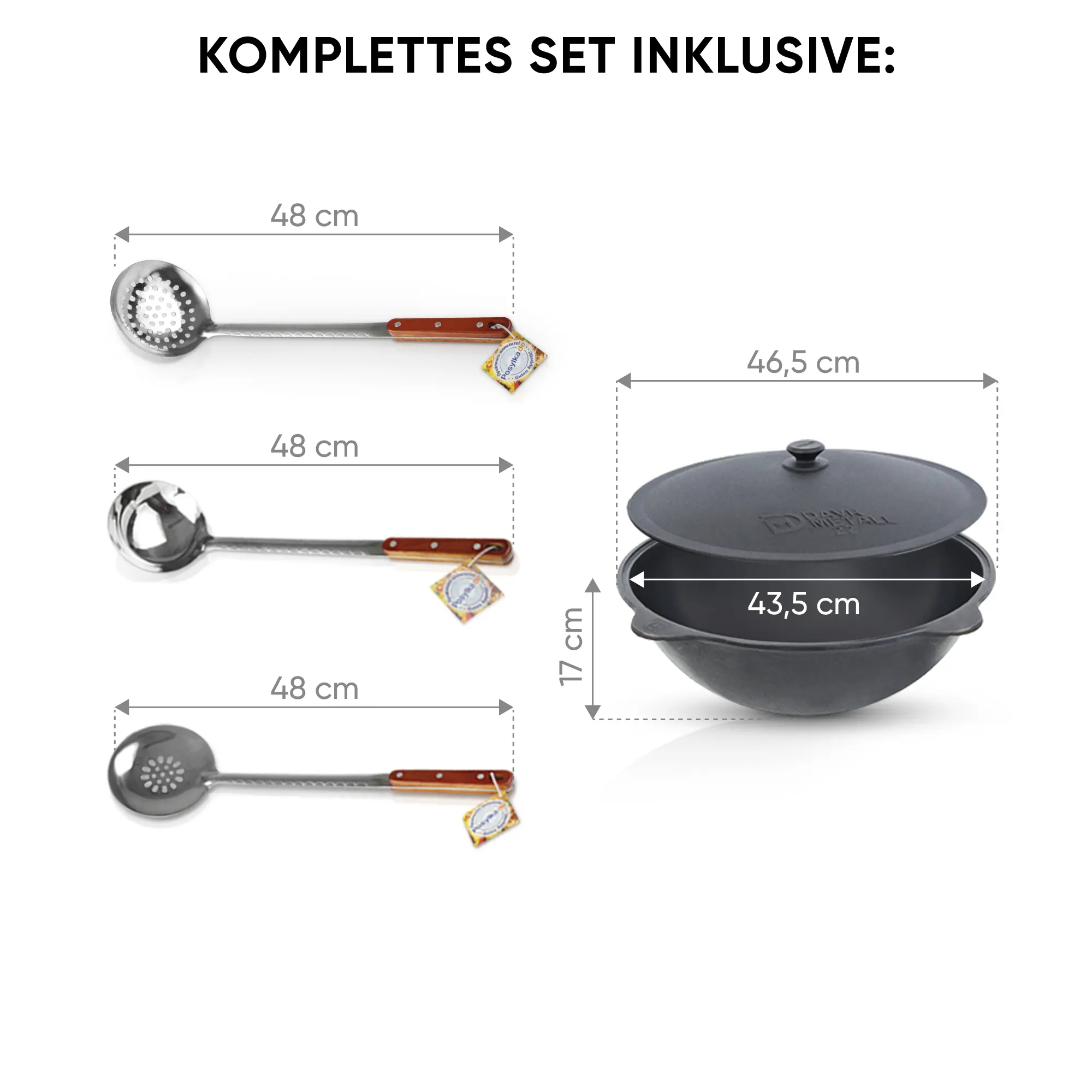 Utschak Feuerofen Ø 44 cm + Gusseisen-Kasan 16 l, runder Boden + Küchenzubehör, Usbekischer Kochtopf aus Gusseisen