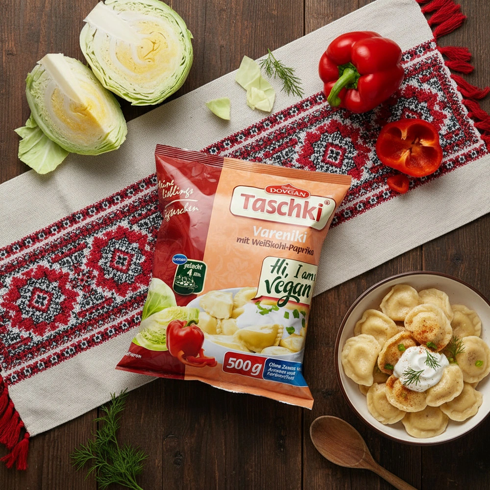 Wareniki mit Weißkohl und Paprika sind ein köstliches veganes Produkt, das Ihre Geschmacksknospen verwöhnen wird. Diese tiefgefrorenen Teigtaschen sind mit einer großzügigen Füllung aus 45% Weißkohl und Paprika gefüllt.