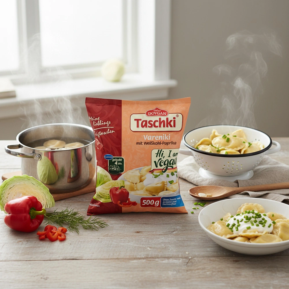 Wareniki, Teigtaschen - Taschki, mit Kohl und Paprika, vegan, Dovgan, 500 g