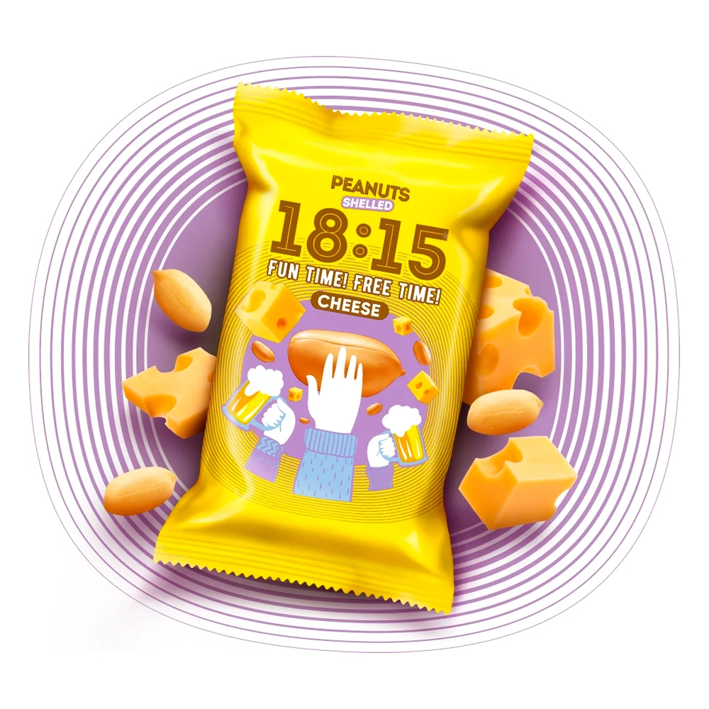 Расслабтесь на свежем воздухе с арахисом «18:15» со вкусом сыра — идеальным перекусом для пикников, походов или просто отдыха на природе. Насладитесь сливочным сырным вкусом восхитительного арахиса, который сделают любое приключение на природе ещё приятнее!