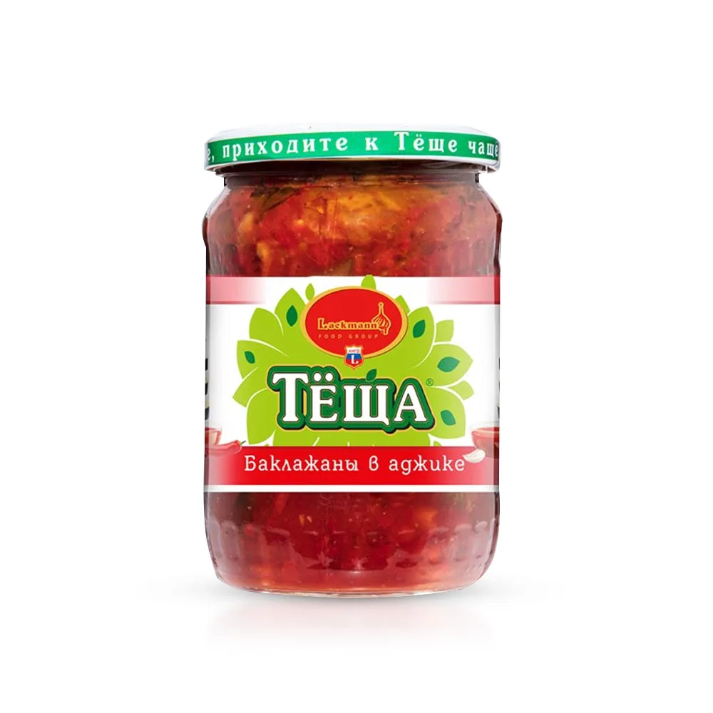 Состав: Баклажаны 58 %, Томаты 18 %, Паприка 10 %, Чеснок, Перец чили, Уксусная кислота, Подсолнечное масло, E200, Загуститель: Ксантановая камедь, Пищевая соль