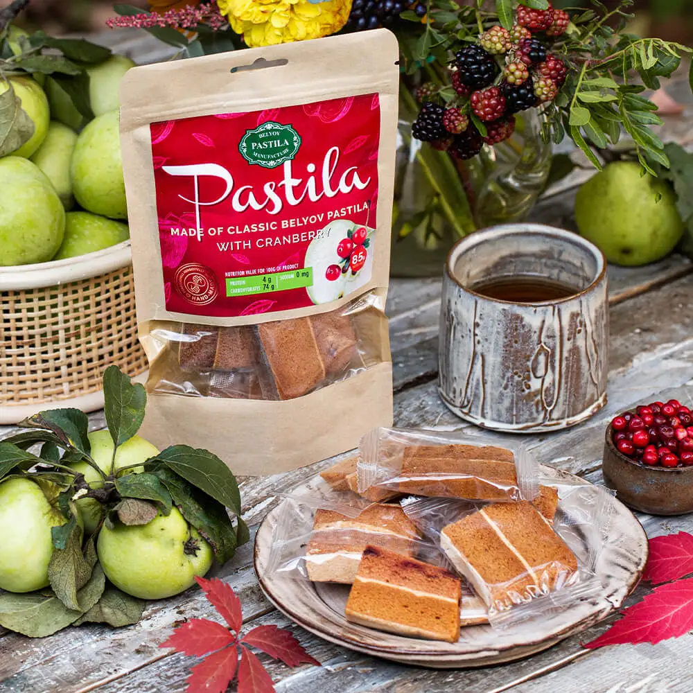 Белевская пастила с клюквой, порезанная кусочками, 85 г