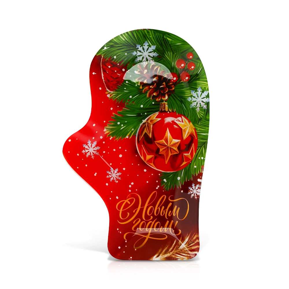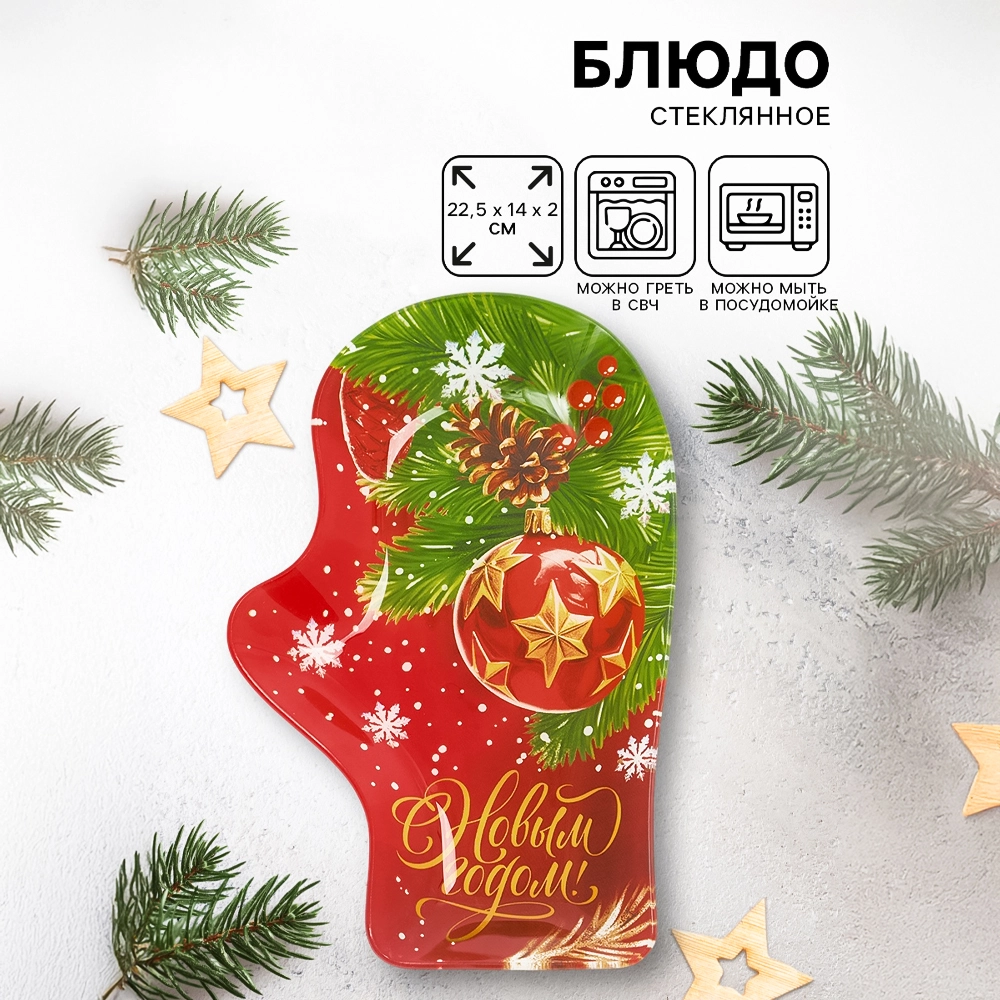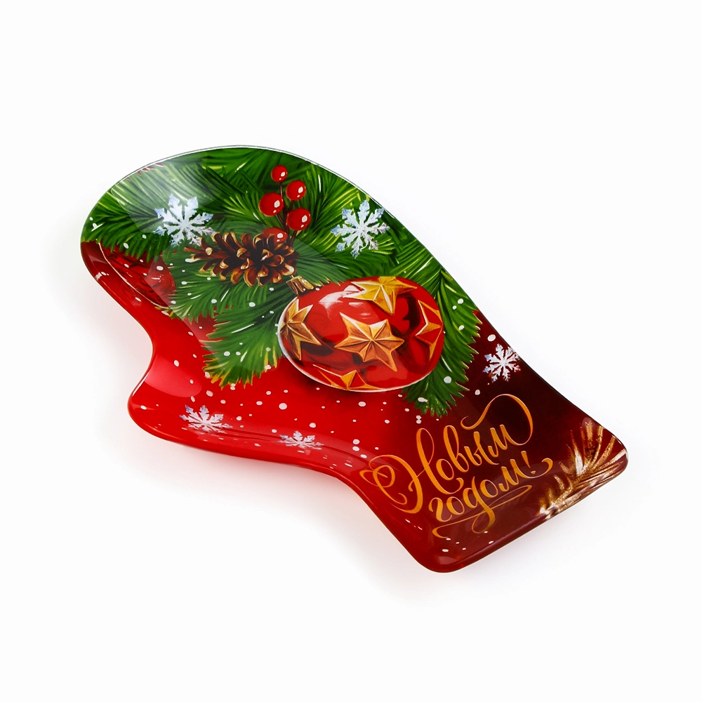 Блюдо - Рукавица. С Новым Годом!, стекло, 22,5 х 14 х 2 см