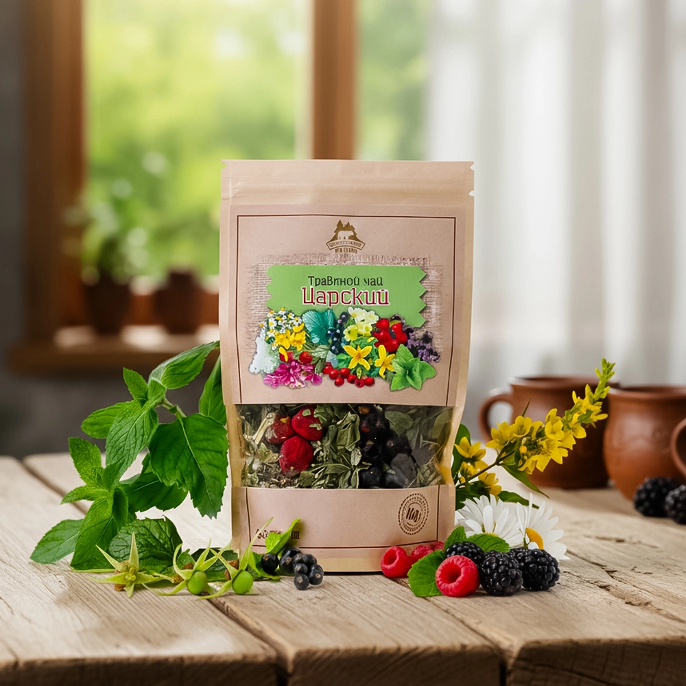 Благодаря своему богатому составу, такой травяной чай можно назвать поистине царским. Он соединяет в себе не только общеукрепляющие, но и противовоспалительные свойства. Это отличный помощник при авитаминозе, в таком чае содержатся все жизненно-важные витамины, которые необходимы организму. В сезон простудных заболеваний травяной чай укрепит иммунитет, а также зарядит бодростью на целый день! Ароматные листочки смородины и мелиссы придают чаю изысканный аромат, а сушеные ягоды малины привносят необычный вкус.