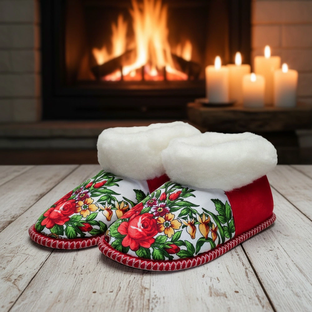 Чуни домашние с Павловопосадским декором, цвет красный, размер 36