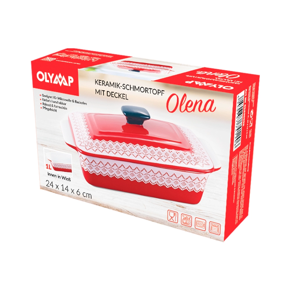Форма для запекания - Олена, с крышкой, керамика, цвет красный, 24 х 14 х 6 см, 1 л