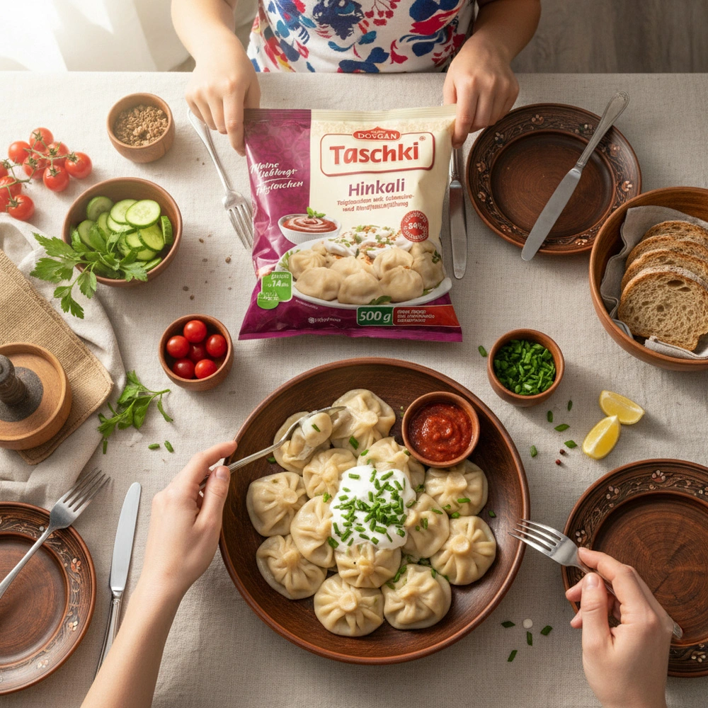 Хинкали. Мне вкусно, сытно, может немного не хватает кинзы и перца черного. Я перчёное люблю. Но вкус мне нравится, и когда лень готовить (а это часто бывает) я варю их. С сацебели и Киндзмараули отлично сочетаются.
