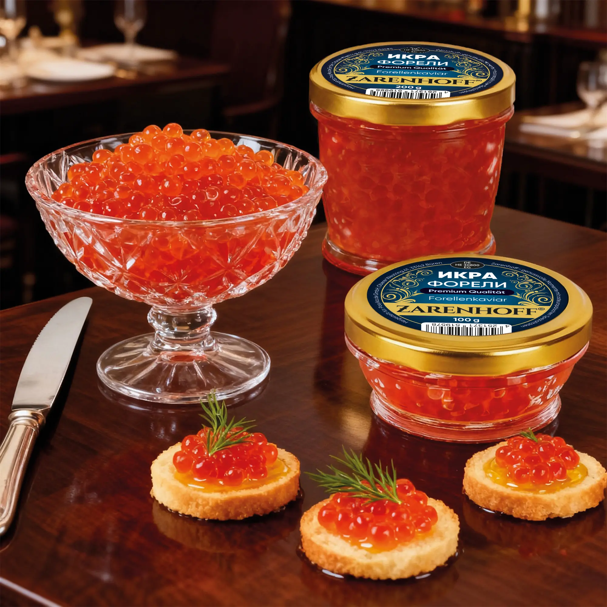 Состав: Икра форели (Salmo trutta), Соль, Е211, Е202