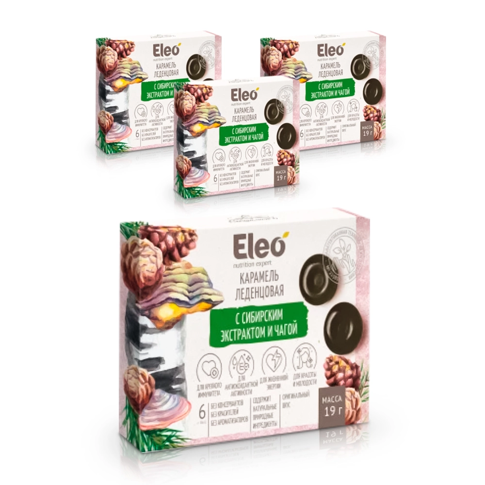 Карамель леденцовая, с сибирским экстрактом и чагой, Eleo, 19 г х 4 шт.
