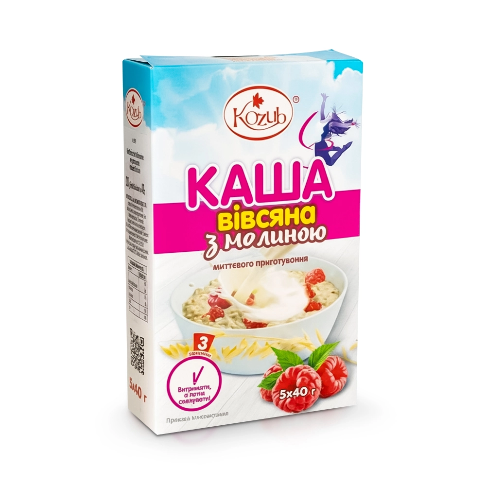 Каша овсяная, с малиной, Kozub, 5 x 40 г
