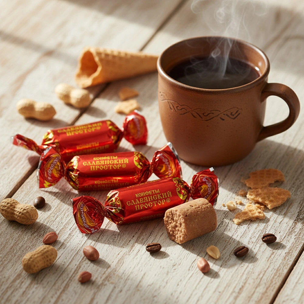 Конфеты батончики - Славянский простор, с вафлями и арахисом, 300 г